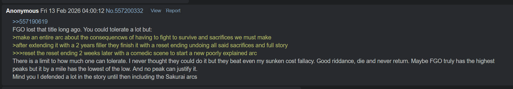 >>558634705>You are beyond saving if you think this is actually how stories work.I'm not in discussion with you, I'm telling you you're wrong about something you said.