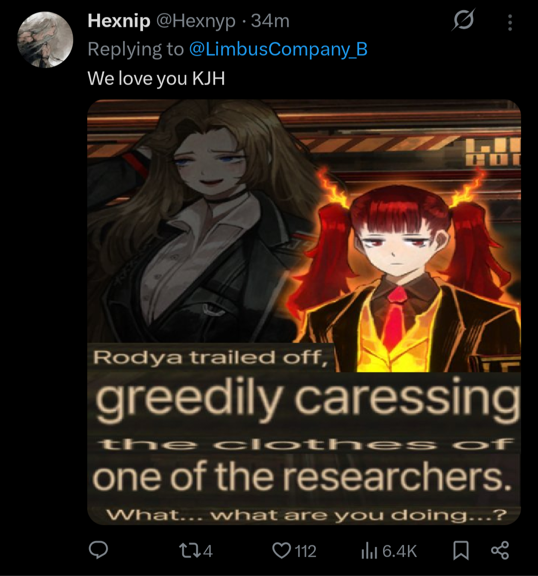 >>558615869>>558615503>>558615486Finally. Limbus will die and we can finally get Lobotomy Corporation 2.