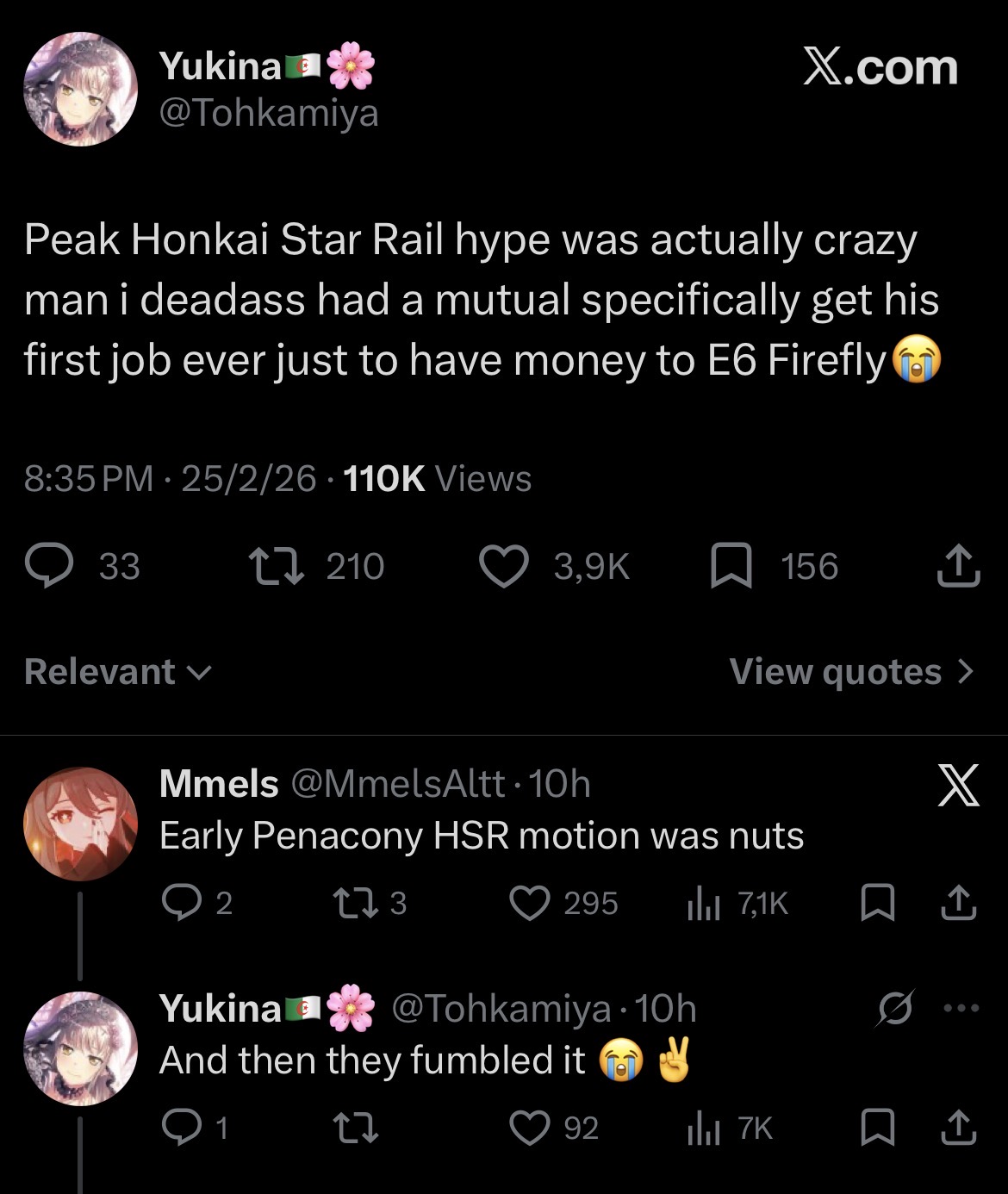 >>558640621>hsr will be heading towards hi3 soon enoughYuri? A NGE collab?