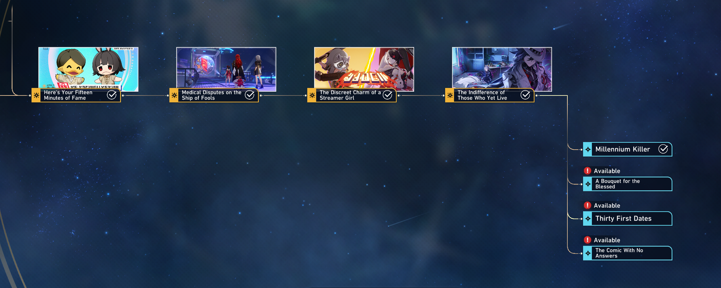 Previous: >>558585981>Download - https://hsr.hoyoverse.com/en-us/home>4.0 Preview Page - https://act.hoyoverse.com/sr/event/e20260206version-nwlbwa/index.html>Version 4.0 Trailer: "No Aha at Full Moon"https://www.youtube.com/watch?v=2hH0hILcWPshttps://www.youtube.com/watch?v=EMT6GmhDiBk>Yao Guang Character Trailer: "All the Best"https://www.youtube.com/watch?v=XpQ0TXUnESQhttps://www.youtube.com/watch?v=ke8-S0MnoV0>Improv Tour Trailer: "Binge It All! The Truth After the Battle of Irontomb!"https://www.youtube.com/watch?v=VsrABLcQQvchttps://www.youtube.com/watch?v=FOj68wLqj7A>Myriad Celestia Trailer: "Anti-Destruction Alliance"https://www.youtube.com/watch?v=ZwnE5o7_gzAhttps://www.youtube.com/watch?v=_2YD35PJOmU>Improv Tour Trailer: "Beyond Weal and Woe"https://www.youtube.com/watch?v=kmzwoua4dUkhttps://www.youtube.com/watch?v=cKxHKZaEURk>Current Character Banners: Yao Guang, Evernight, Black Swan + Pela, Hanya, Qingque - https://www.hoyolab.com/article/43738489>New Drip Marketing:>Ashveil (5* Lightning Hunt) - https://www.hoyolab.com/article/43666646>Redeemable Codes - https://hsr.hoyoverse.com/giftKBJ8VZ6Y27QXXAK9QJ454SG7MH5KCBGF3AAT45QSTARRAILGIFT>/hsrg/ Tools & Resourceshttps://rentry.org/hsrg-resources-14>/hsrg/ Thread Templatehttps://rentry.org/hsrg-thread-template-14