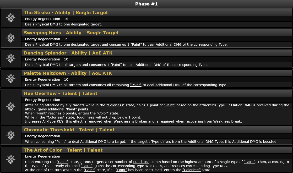 >>558638010The ult is literally half her kit. Characters that are meant to spam ults all have built-in passives or eidolons that help them do it. From Acheron to Feixiao to Tribbie to Cyrene, they all have stuff in their kit that lets them generate energy or ult stacks without needing to take turns. Yao being locked to her own turns is a specific design choice. For Yae's DPS kit to synergize with Yao specifically but not Sparxie, she would need to have the following mechanics to NOT make her a brick:>gives additional energy to the team at battle start>elation skill does little damage, instead helps charge her energy>gains additional energy every time the team does elation damage>can transfer energy to another character, higher energy gain if character has more than 160 energy>elation damage is based on team member with highest punchline count>attack and consume multiple skill points per turn like Archer