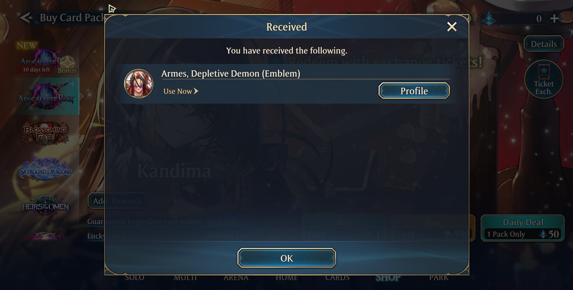 I will get Kandima from my free 20ish packs. I know it.
