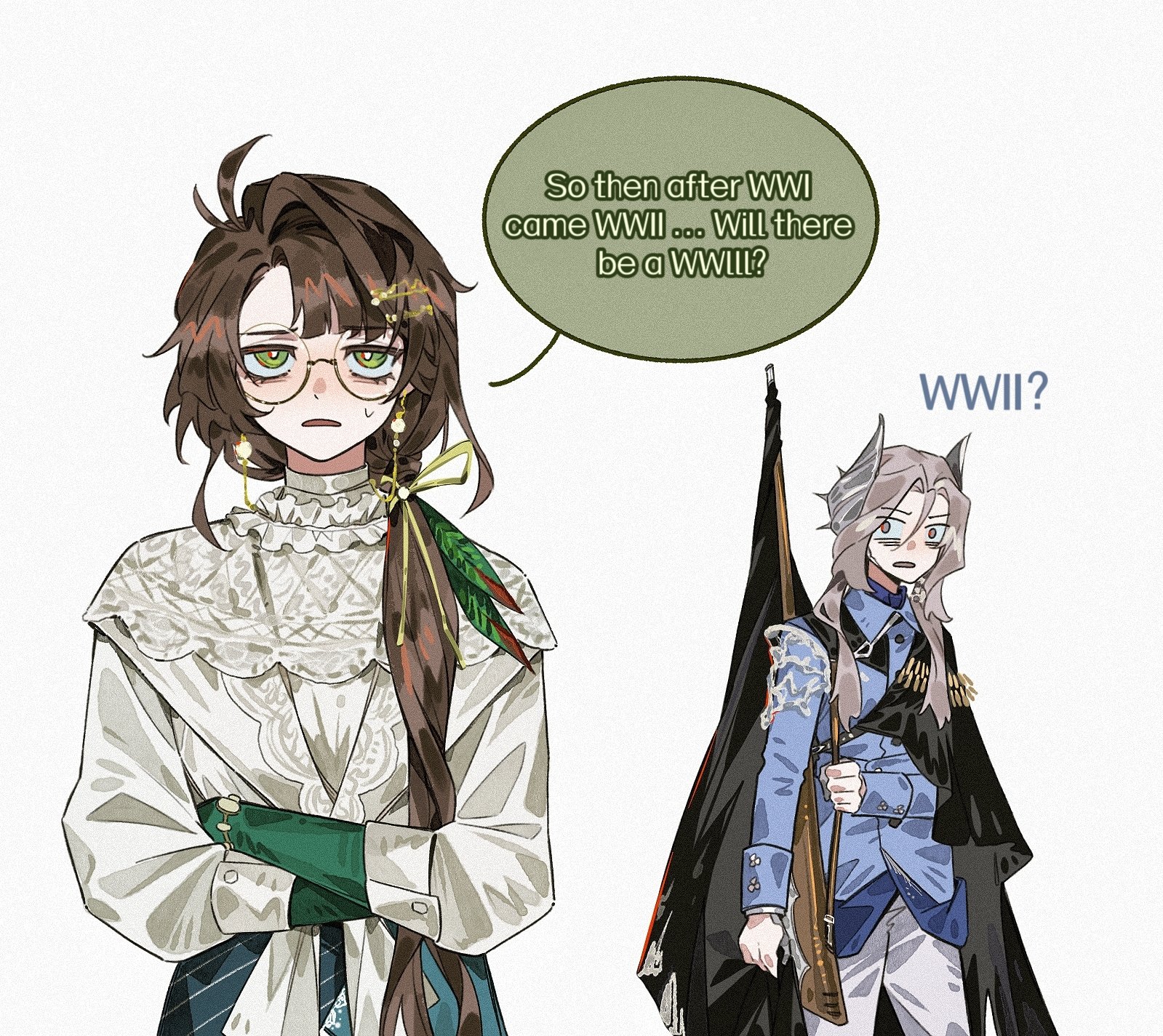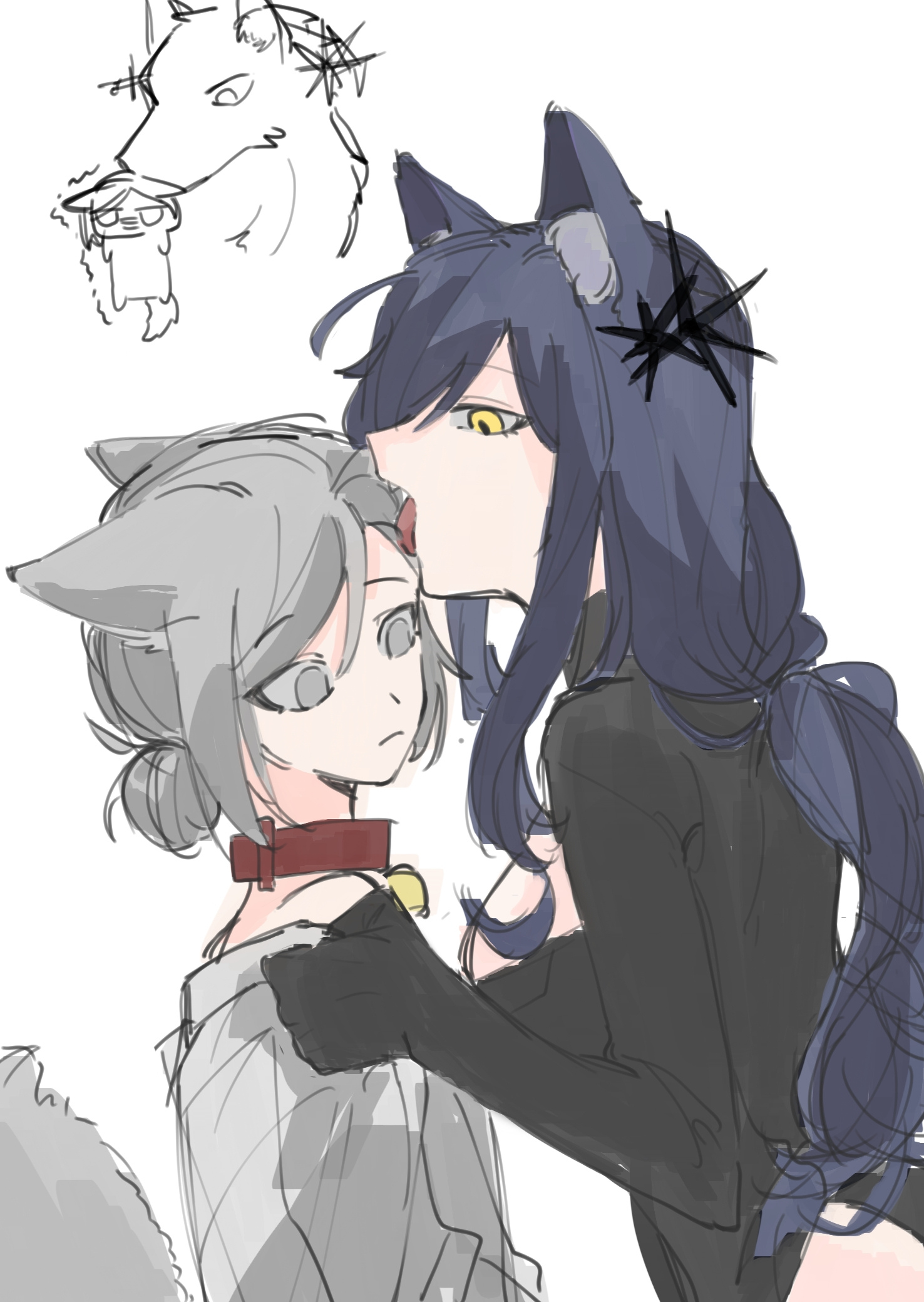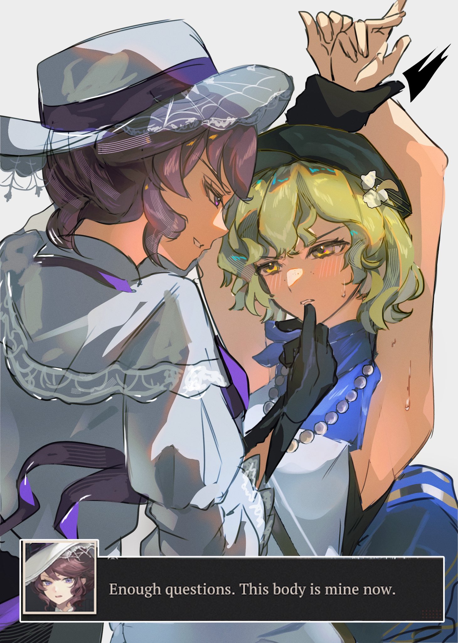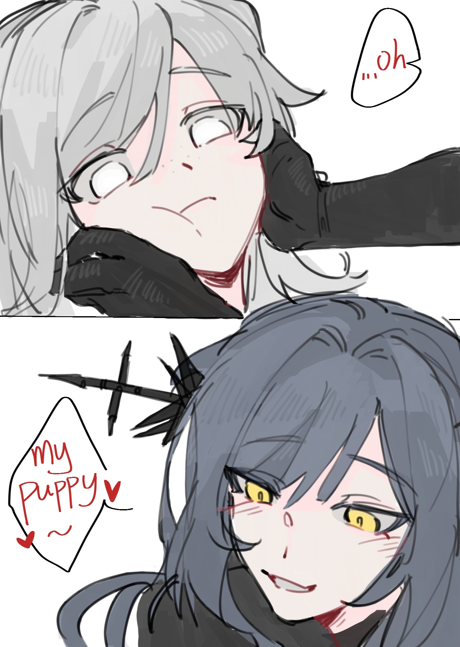 >>558931237>The image shows an interaction between the characters Lappland (silver hair, white eyes) and Texas (dark hair, yellow eyes) from the game Arknights.thank you Gemini, very cool!