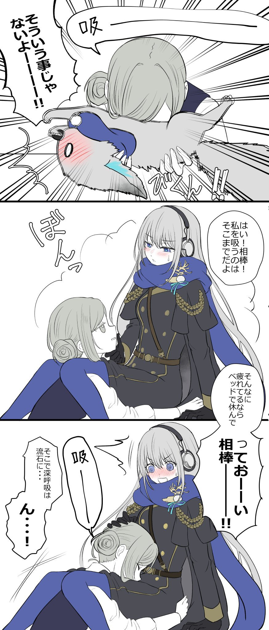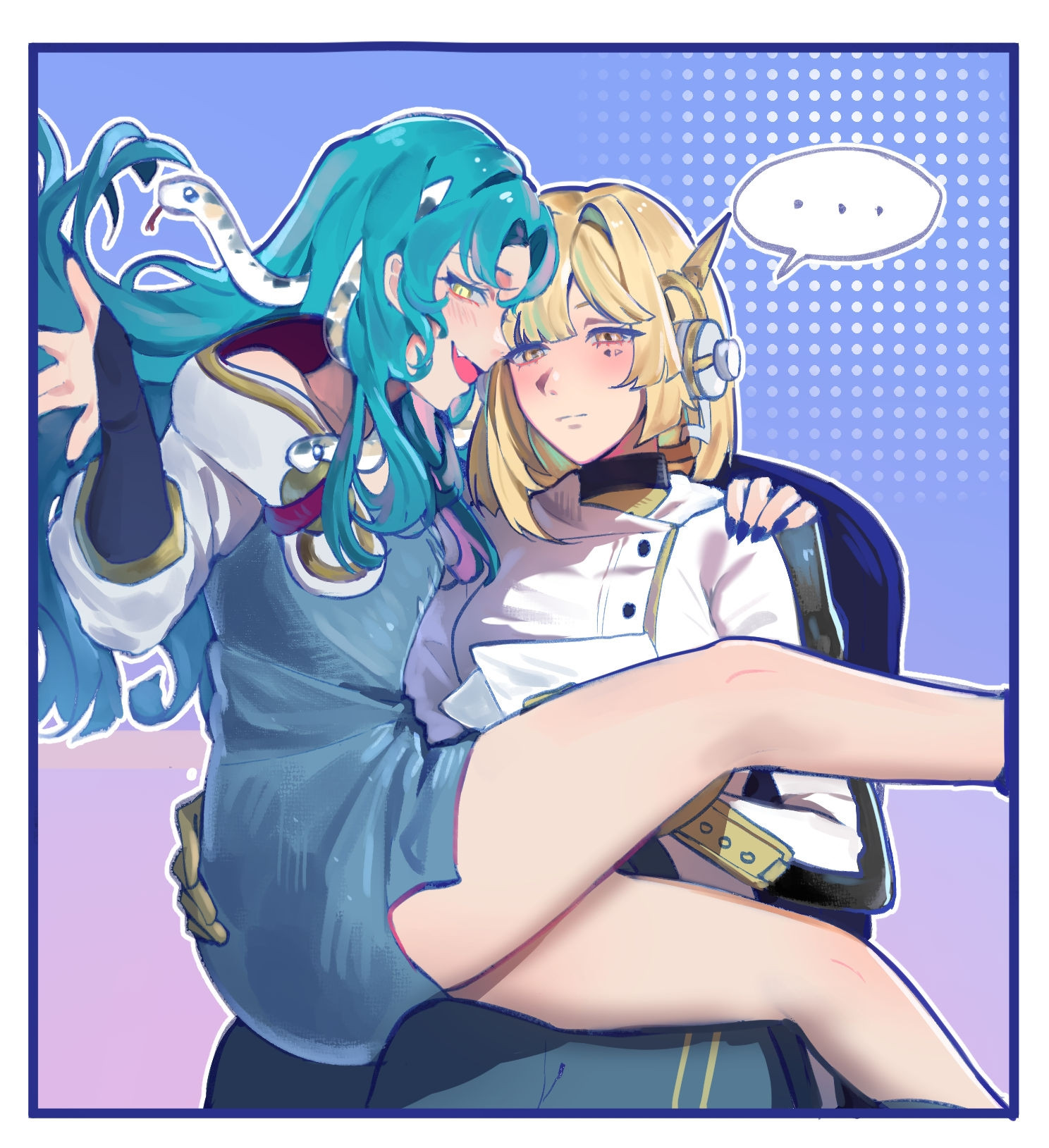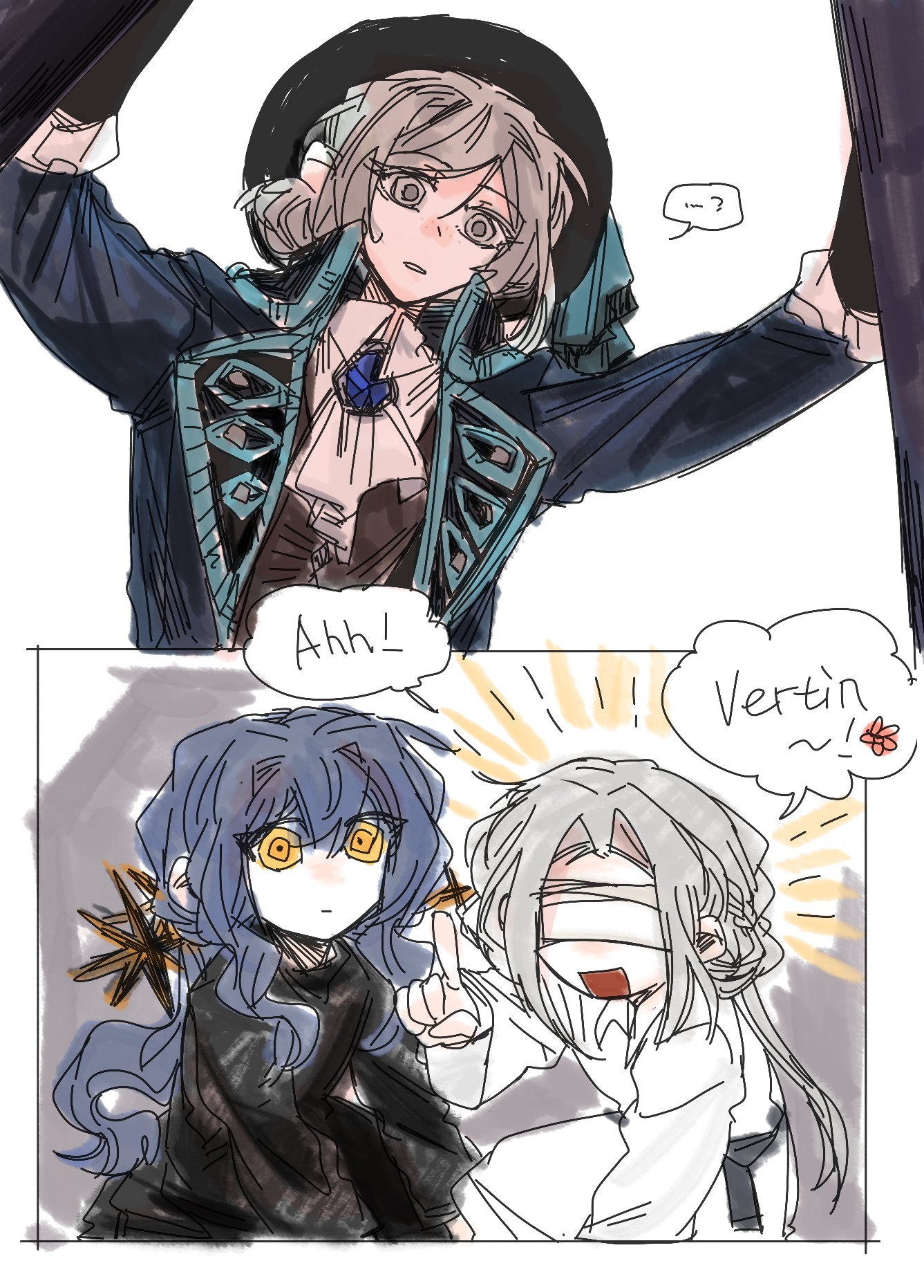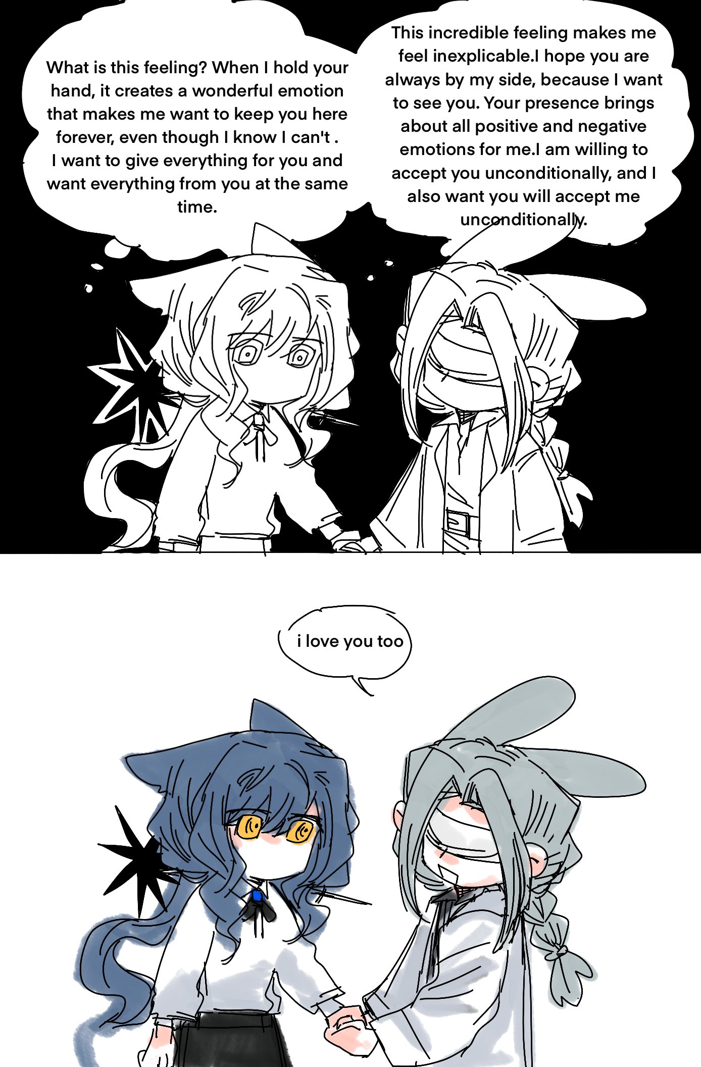 >>558931237>The image shows an interaction between the characters Lappland (silver hair, white eyes) and Texas (dark hair, yellow eyes) from the game Arknights.thank you Gemini, very cool!