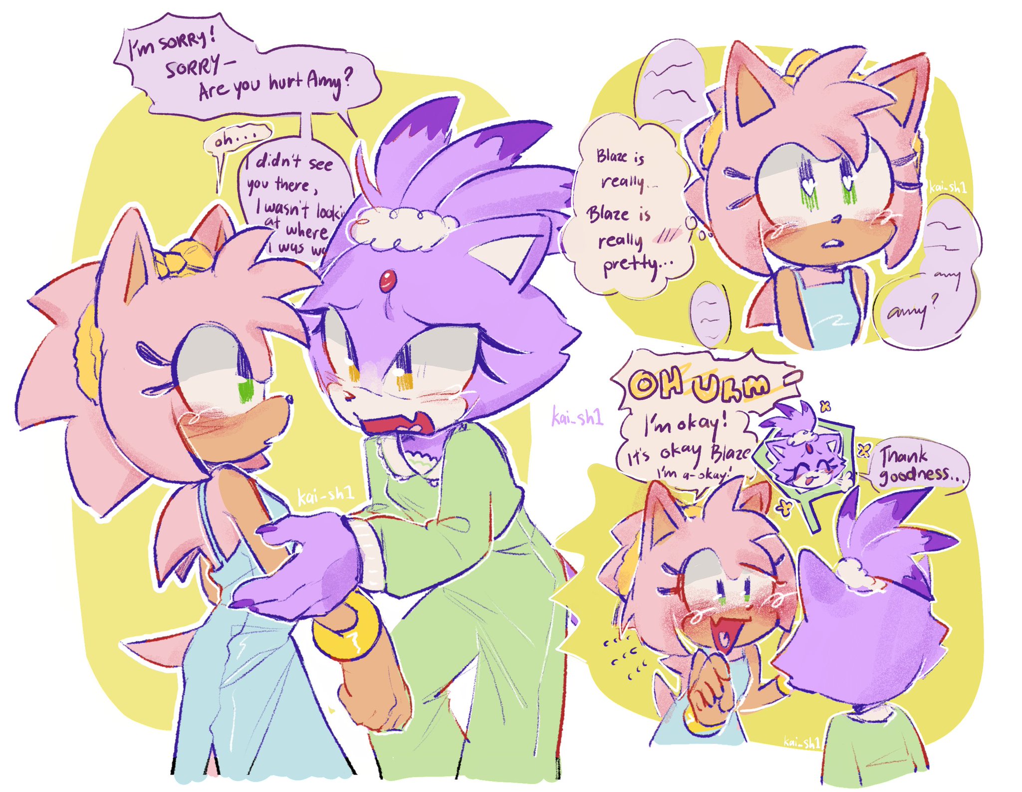 >>558652074Plot summary:[Spoiler]Blaze is super stressed out and pent-up, so her royal advisors force her to take a vacation to help her relax. She goes to Sonic's world, where Amy offers to give her a tour to the spa, go shopping, etc. This results in the two of them living together for a period of time, where the thin walls lead to Blaze overhearing Amy moaning. Blaze is taught how to masturbate by Amy because she's completely clueless about how sex works and has never relieved herself ever. This eventually leads into Amy becoming Blaze's dom [/spoiler]