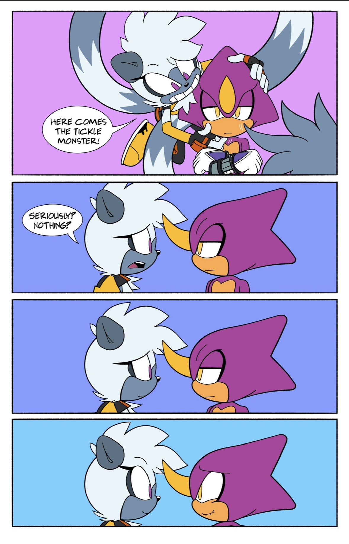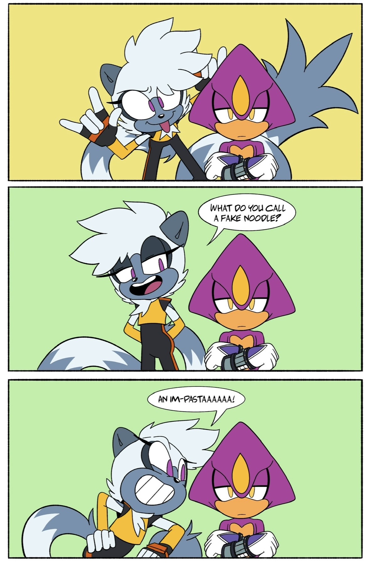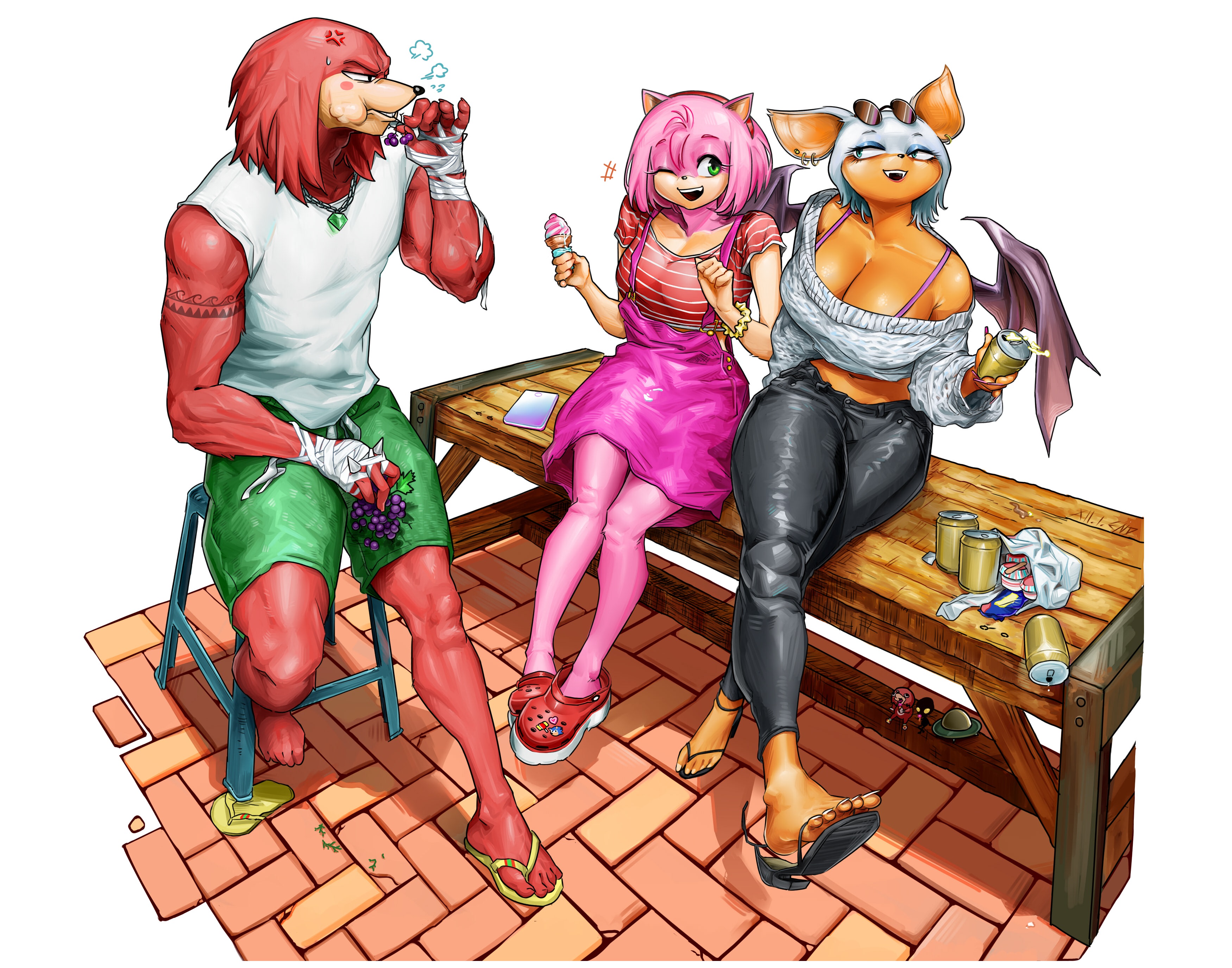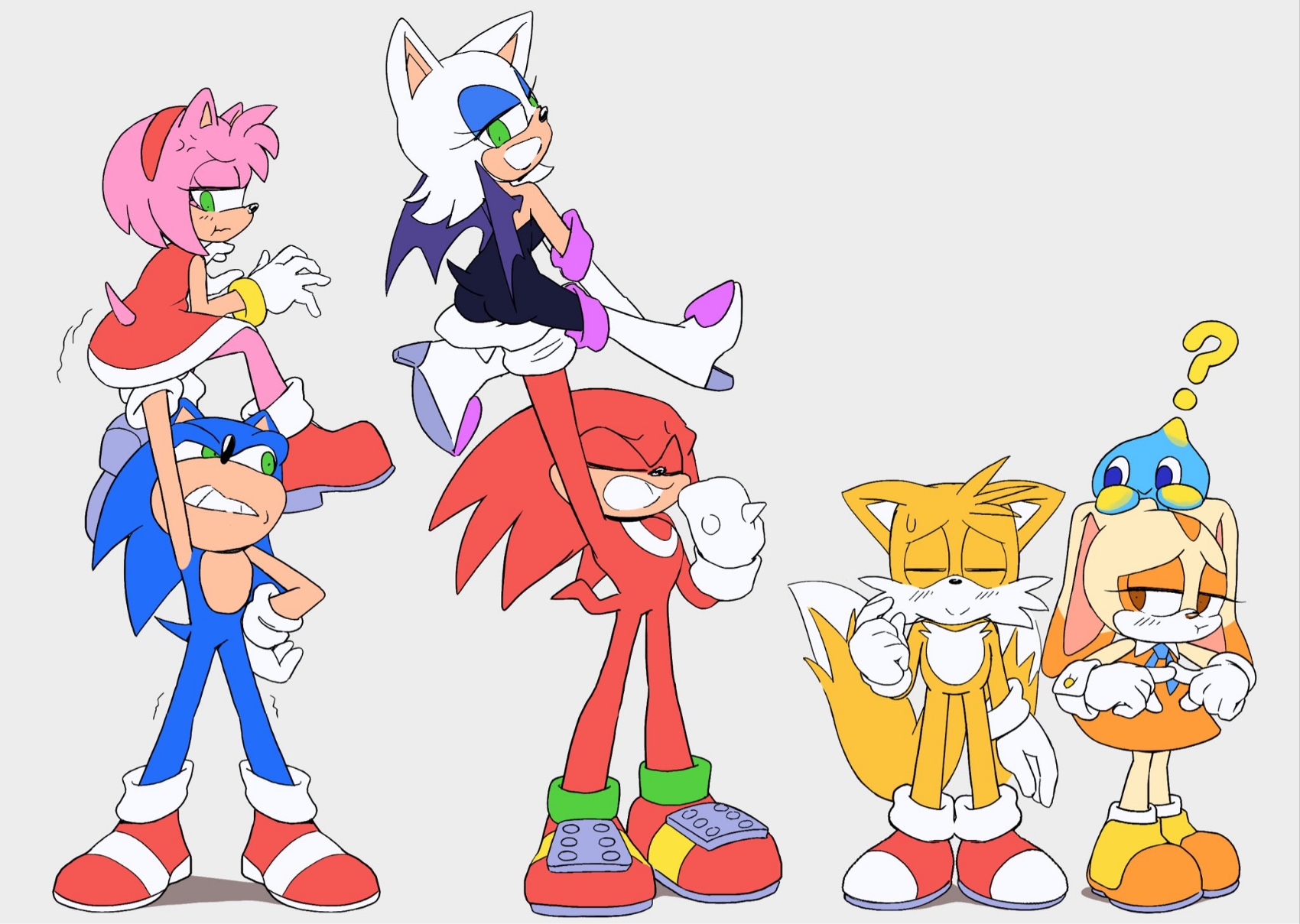 >>558650816>Implying Sonic isn't strong enough to hold a single person up easily>Shitty Tailream At least the style is cute and the coloring good.>>558650759No idea why they gave Blaze such an ill-fitting outfit here. Surge's pants are nicely done though.