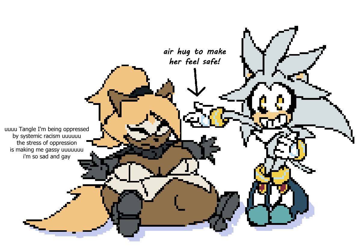 >>558650816even in your forced trio shit art Tails and Cream are too boring to actually interact like the others.That or the author doesn't actually like them like the other two (because they're BOOOORING)
