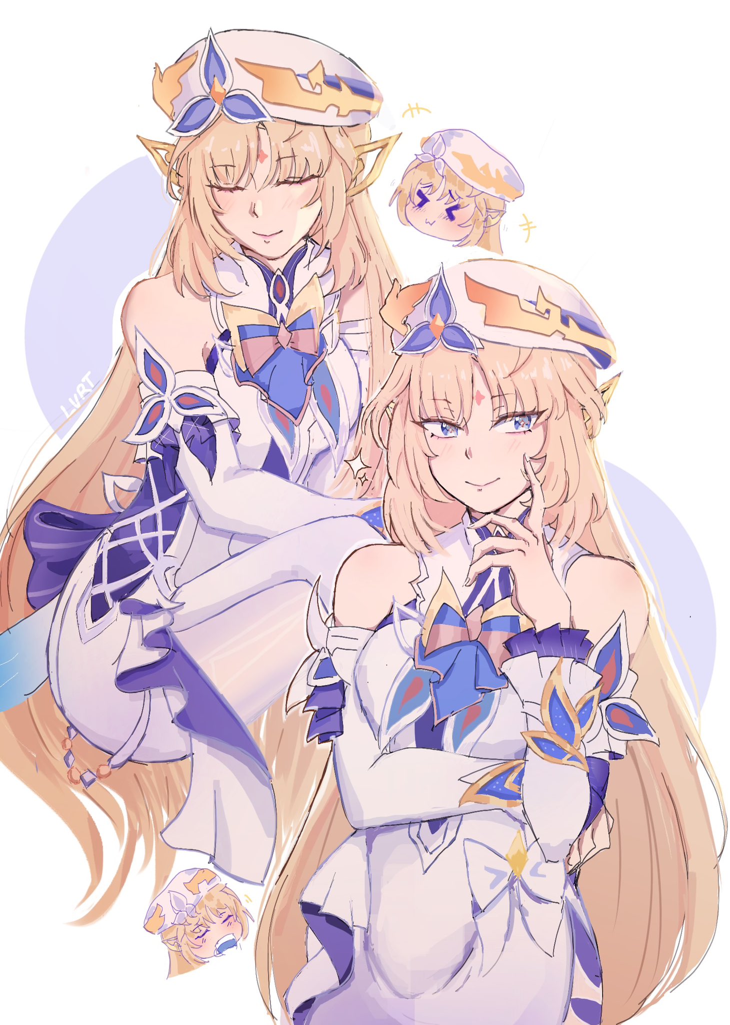 Is Linnea peak generic HoYo design?Detached sleeves, short dress, symmetry-breaking accessory. The back of her clothes absolutely must be long, flowy, able to flap around while running, and split in half.If her hair is long, it must also be split in half. (Fortunately, Linnea has short hair.)