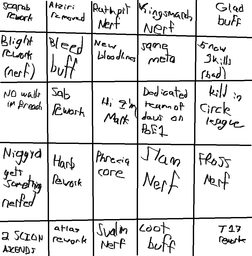 >>558693109Don't forget about forbidden gems, scion will be busted ngl.