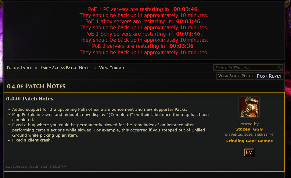 GROUNZ LOOTZ editionNEW LIVESTREAM DROPS TODAY 2PM E.S.T.https://youtu.be/tn4hHGjVtkk?si=jT1qmZ0WVffWId0Iwww.twitch.tv/pathofexile[PoE 2]>Druidshttps://pathofexile2.com/druids>Ongoing 0.4 patch noteshttps://www.pathofexile.com/forum/view-forum/2212[PoE 1]>New league on March 6thhttps://www.pathofexile.com/forum/view-thread/3911341>3.27/Phrecia patch nodes:https://www.pathofexile.com/forum/view-forum/patch-notes>Compiled links, tools and utilitieshttps://pastebin.com/SHt8unCt (embed)>>558548529