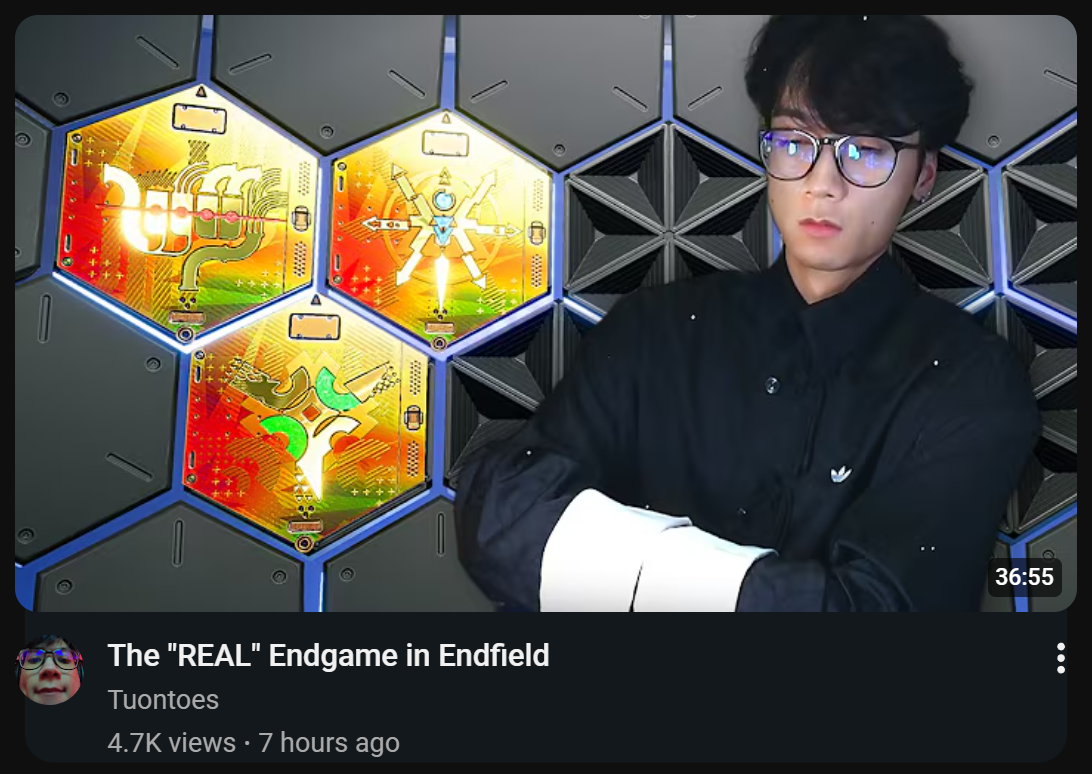 Previous thread: >>558659316>Official Websitehttps://endfield.gryphline.com/en-us>Official EN X (News)https://x.com/AKEndfield>DEV Comm (Developer Updates)https://endfield.gryphline.com/en-us/news/3846>Yvonne PVshttps://youtu.be/1mTQW3rAMXchttps://youtu.be/rDmr6zDPEawhttps://youtu.be/xqSHlK8kAKI>Chartered Headhunting ScheduleFebruary 24th to March 13th --- "Hues of Passion", (Yvonne)>Reward CodesENDFIELDGIFTENDFIELD4PC>Twitch Dropshttps://endfield.gryphline.com/special/third-party-binding?channel=twitch>Voyage to the Stars (Ongoing until March 4th)https://endfield.gryphline.com/activity/voyage-to-the-stars/en-us/>Wikishttps://wiki.skport.com/endfield (Official)https://perlica.moehttps://warfarin.wiki/enhttps://endfield.wiki.gg/>Blueprint Guideshttps://talospioneers.com/en>Stickershttps://drive.google.com/drive/folders/13KH3L6QPIKkVH7pBddv4uxwmwJsnOtklhttps://drive.google.com/drive/folders/1OuVtjv1k-9c3M6n7d4PX3CGG5bkwH04ahttps://drive.google.com/drive/folders/1AStB8bzFk3lSwMwczWPkFYCBrZe0vHOghttps://drive.google.com/drive/folders/1yS0lqUhxf8tBRtpDFfCU1y16IS2sSeF7>Fr/end/sSubmit your info, /end/min:https://forms.gle/Fo7BhZMKaKqiWyL19View other /end/mins:https://docs.google.com/spreadsheets/d/1YtxiDss0hgEQhLlZgpfzyGrJrzUcqDzOS9T6IH-BiVc/edit?usp=sharing