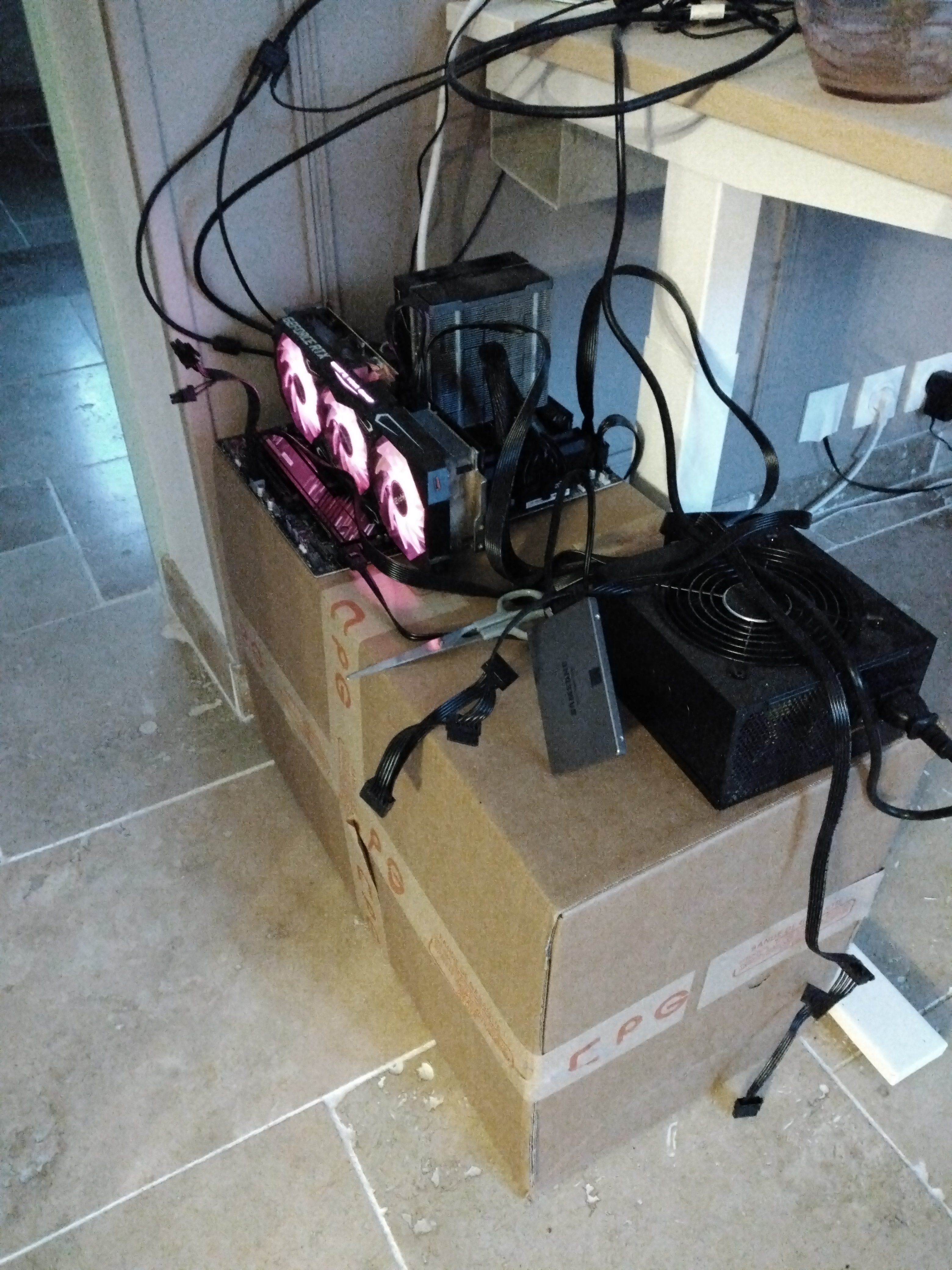 >>558708370Incidently, the pair of scissors is used to start the computer.You apply them directly onto two of the exposed pins to boot the motherboard.