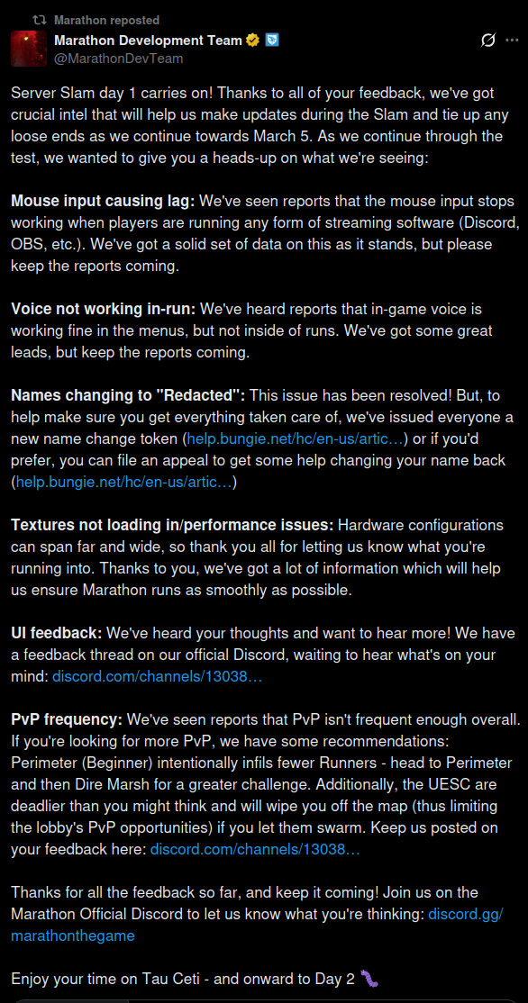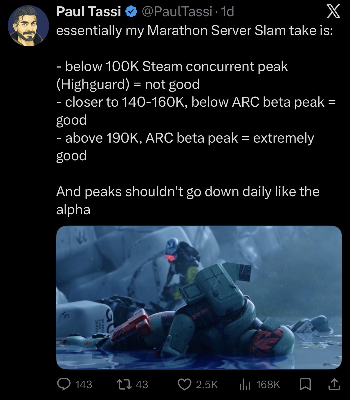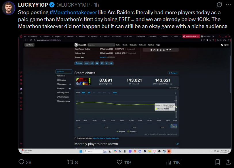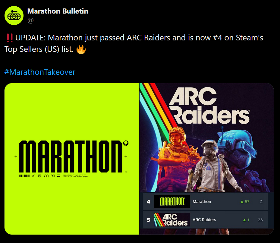 Even if Marathon surpasses Arc's server slam numbers, I can't imagine that the playerbase survives long term because it seems extremely sweaty.