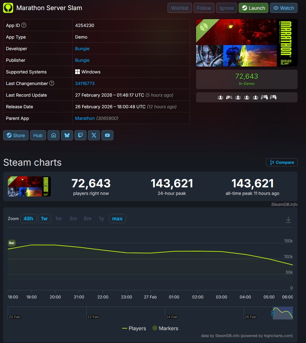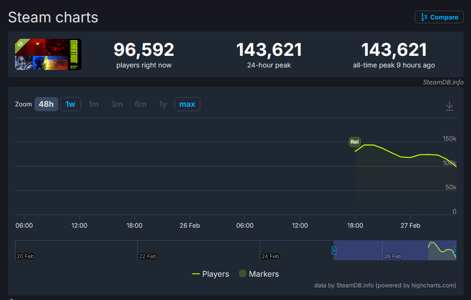 You guys know that all games actually have less players in their free beta than the full release right? Marathon is about to go to the moon next week