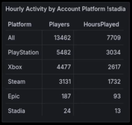 >its peak gaming hours across half the u.s>Half of its player count as yesterday