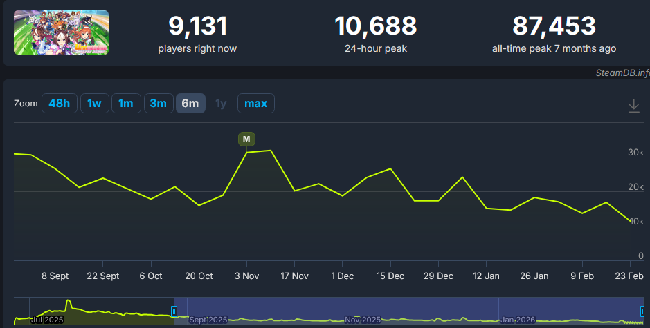 >>558715201So being above 1/10 is already considered a success? Oh man having only 6k players seems impossible haha...
