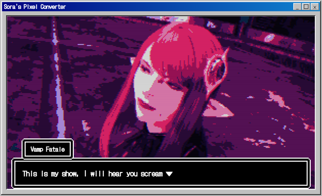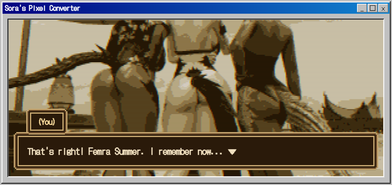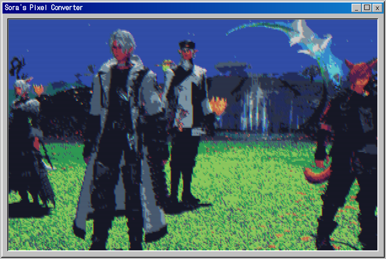 hi anons I found a really neat pixel-converter a japanese artist on X made and I think it'd be cool if people tried converting some of their screenshots with it and posting it here.. the results can be pretty cool!!its https://pixel-converter.ameniwa.com/also it doesn't use AI or anything, just runs through your browser.. it's really neat, so won't you give it a try?