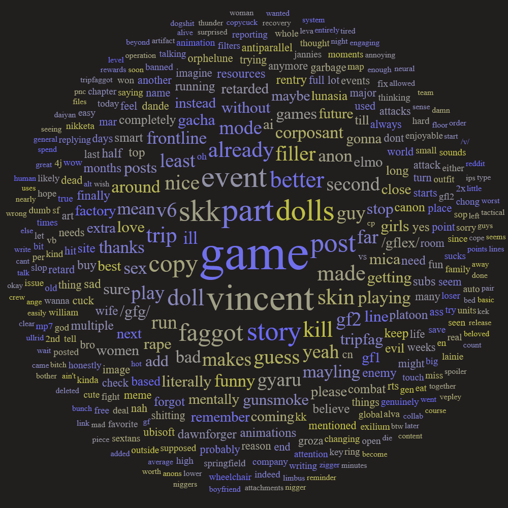 Previous: >>558461878This is a thread for MICA/Sunborn games. Including Girls' Frontline 1 and 2, Neural Cloud and Reverse Collapse: Code Name Bakery.Bind your account to a Sunborn ID instead of logging in from Facebook/Google.>STORY SUMMARYhttps://docs.google.com/document/d/1IalPz5JPc8-we4MiOsYhrMrOINifxW9d9Q6mTAqGoq8>TRANSLATED STORY & LORE MATERIALhttps://drive.google.com/drive/u/0/folders/14bAuWaGbagJwucmlit3EkXFqMRV9NHZO>GUIDESGF1 Resources: https://rentry.org/o9ibbk2kGF2 Resources: https://rentry.co/5x2kxhs4PNC Resources: https://rentry.org/dd5q8b25RC: https://store.steampowered.com/app/1127700/Reverse_Collapse_Code_Name_Bakery/>NEWS/EVENTS (GF1 EN)[Upcoming] TBA | Major Event - Virtual Pair>NEWS/EVENTS (GF2 EN)[Current] Feb. 18 - Mar. 12 | Targeted Procurement: Alva[Current] Feb. 18 - Mar. 12 | Corposant - Part 1 + 1.5[Upcoming] Mar. 12 - Apr. 2 | Targeted Procurement: Voymastina[Upcoming] Mar. 12 - Apr. 2 | Corposant - Part 2>NEWS/EVENTS (PNC EN)[Current] Mar. 25 2025 - ? | Nothing>Old Events & OP Templatehttps://rentry.org/gfgroot>DO NOT REDEEMURAB1GD0RC (D) (H)Reminder to bully seaniggers, discord trannies, bugmen, /v/ermins, dramaniggers, tripniggers, tourists, yuritroons, retards & degenerates, and to lurk 2 months before posting