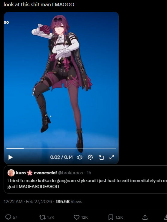 post Kafka doing the catwalk emote