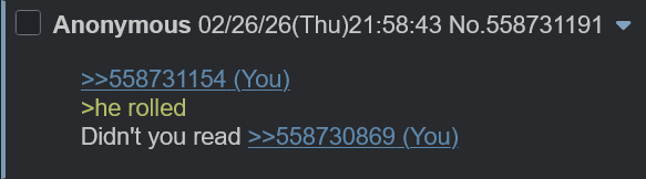 >>558731154>he rolledDidn't you read >>558730869