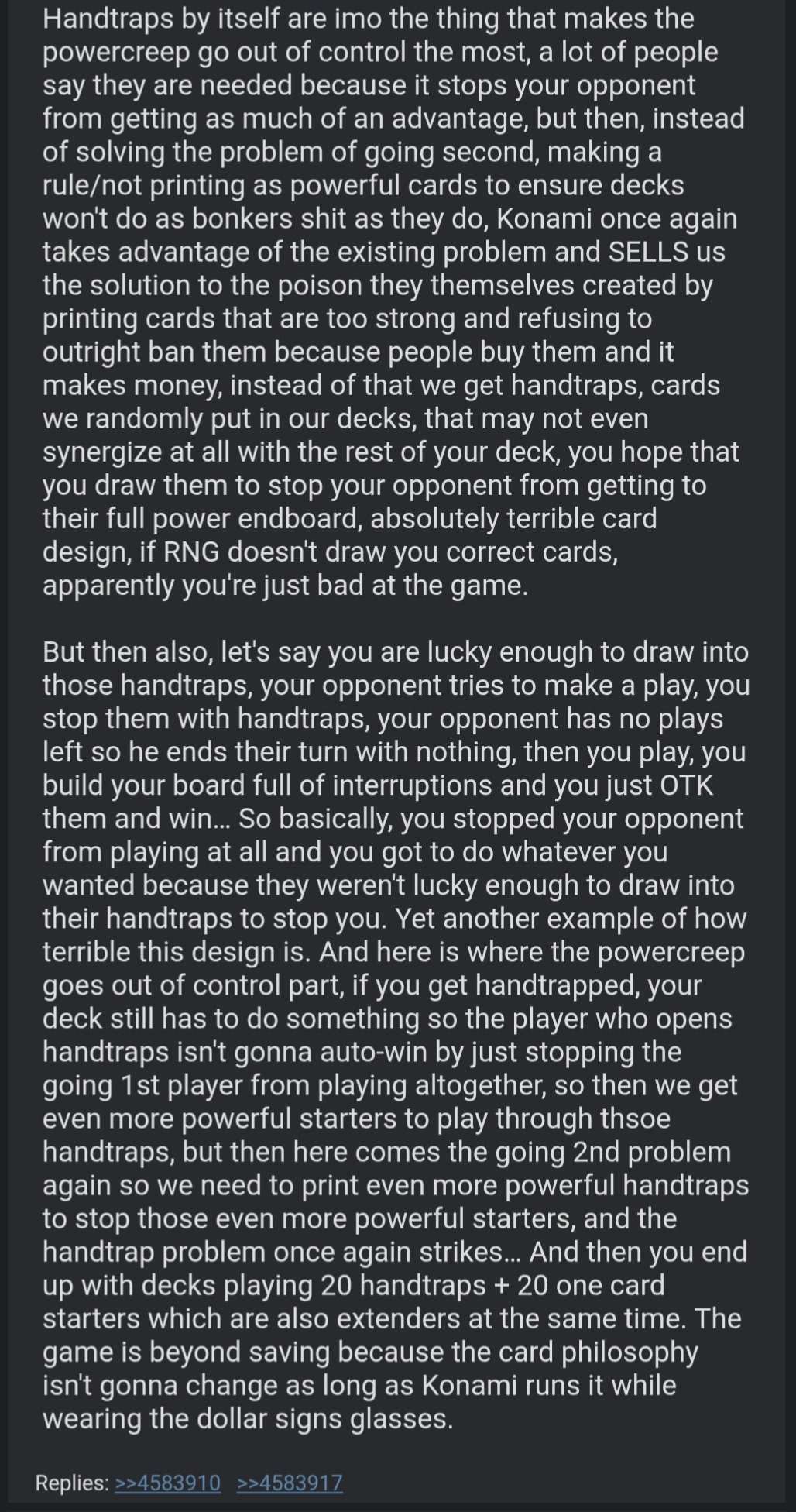 ill take someone lava goleming my whole board twice if it means I got to make my board and play my game. People that defend handtraps need to die.
