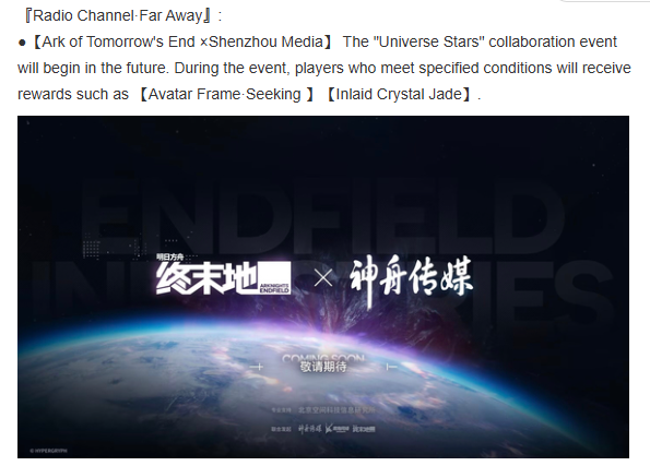 Previous thread: >>558712052gaga googoo>Official Websitehttps://endfield.gryphline.com/en-us>Official EN X (News)https://x.com/AKEndfield>DEV Comm (Developer Updates)https://endfield.gryphline.com/en-us/news/3846>Yvonne PVshttps://youtu.be/1mTQW3rAMXc https://youtu.be/rDmr6zDPEaw https://youtu.be/xqSHlK8kAKI >Chartered Headhunting ScheduleFebruary 24th to March 13th --- "Hues of Passion", (Yvonne)>Reward CodesENDFIELDGIFTENDFIELD4PC>Twitch Dropshttps://endfield.gryphline.com/special/third-party-binding?channel=twitch>Voyage to the Stars (Ongoing until March 4th)https://endfield.gryphline.com/activity/voyage-to-the-stars/en-us/>Wikishttps://wiki.skport.com/endfield (Official)https://perlica.moehttps://warfarin.wiki/enhttps://endfield.wiki.gg/>Blueprint Guideshttps://talospioneers.com/en>Stickershttps://drive.google.com/drive/folders/13KH3L6QPIKkVH7pBddv4uxwmwJsnOtklhttps://drive.google.com/drive/folders/1OuVtjv1k-9c3M6n7d4PX3CGG5bkwH04ahttps://drive.google.com/drive/folders/1AStB8bzFk3lSwMwczWPkFYCBrZe0vHOghttps://drive.google.com/drive/folders/1yS0lqUhxf8tBRtpDFfCU1y16IS2sSeF7>Fr/end/sSubmit your info, /end/min:https://forms.gle/Fo7BhZMKaKqiWyL19View other /end/mins:https://docs.google.com/spreadsheets/d/1YtxiDss0hgEQhLlZgpfzyGrJrzUcqDzOS9T6IH-BiVc/edit?usp=sharing