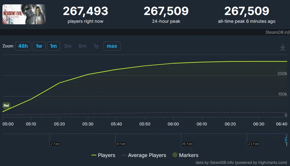 >meanwhile Capcom releases ANOTHER critically acclaimed hit with over a quarter million concurrent players on PC alone