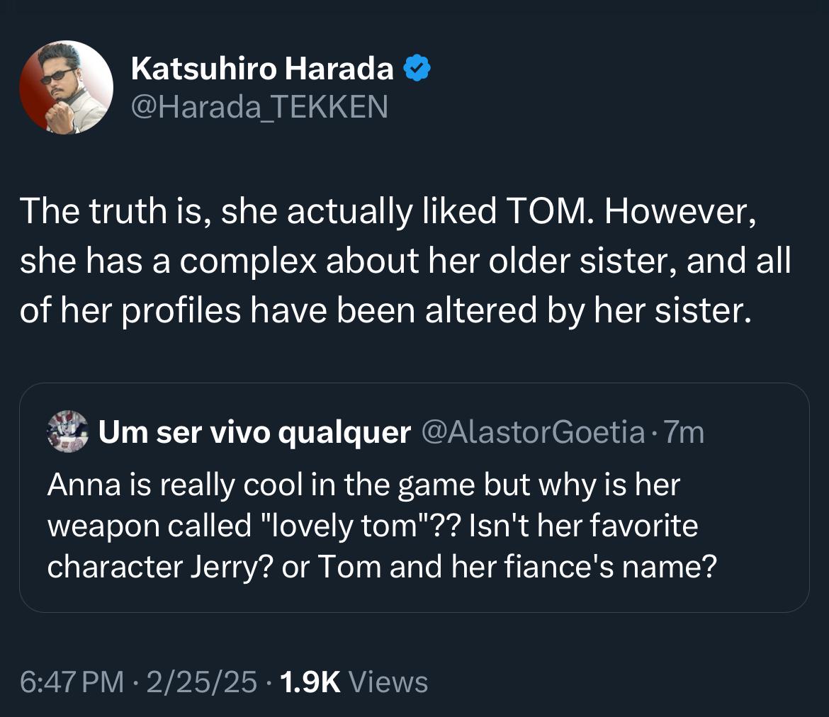 Anna mains would have you believe she's very popular and iconic Tekken character while she's the least popular DLC, even less than fucking Clive