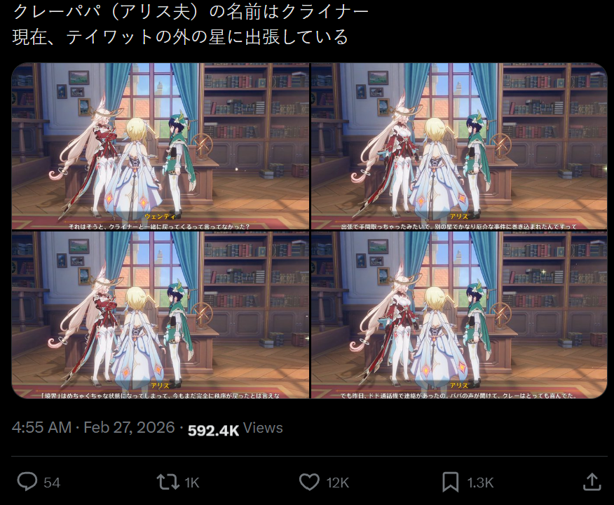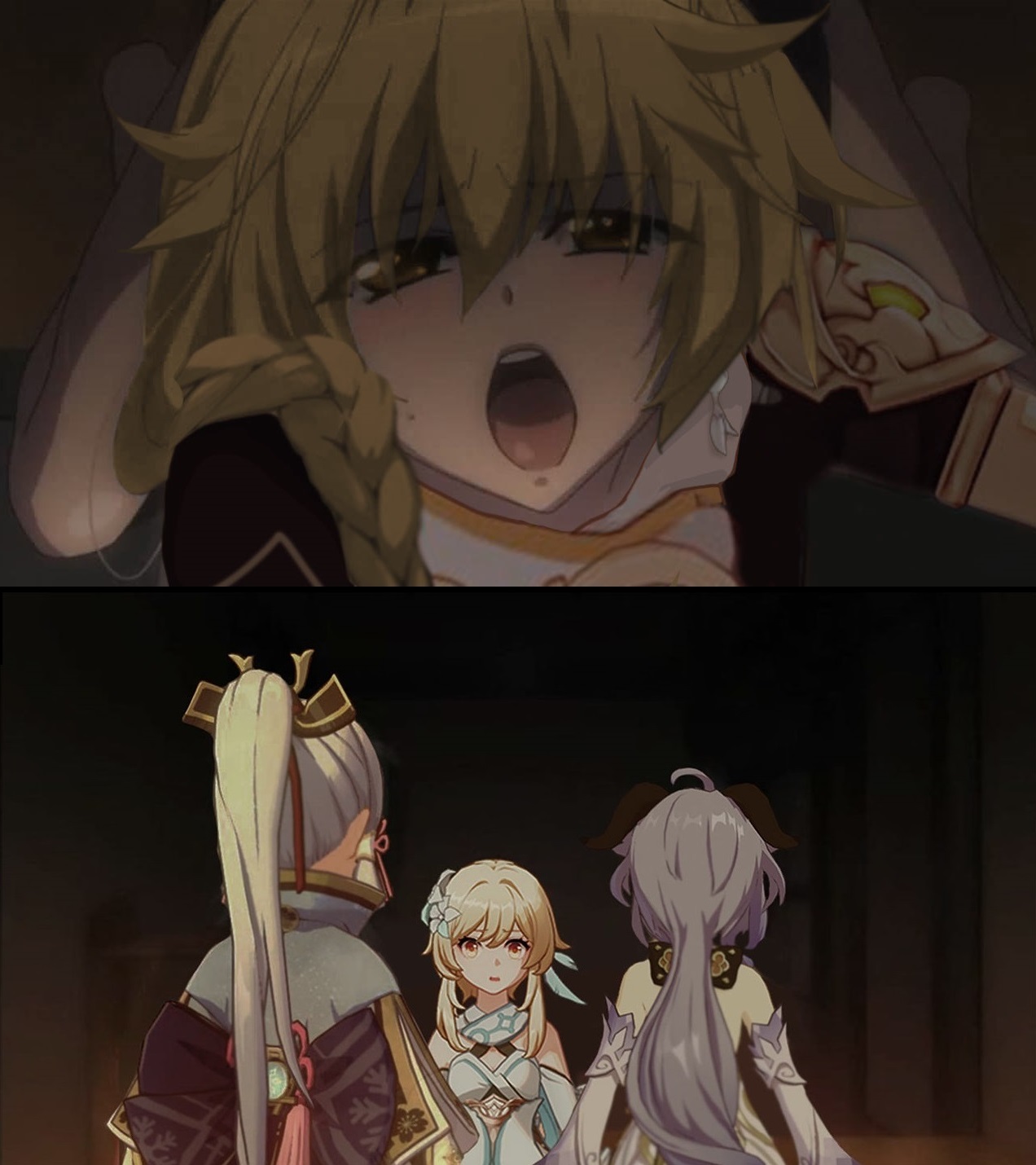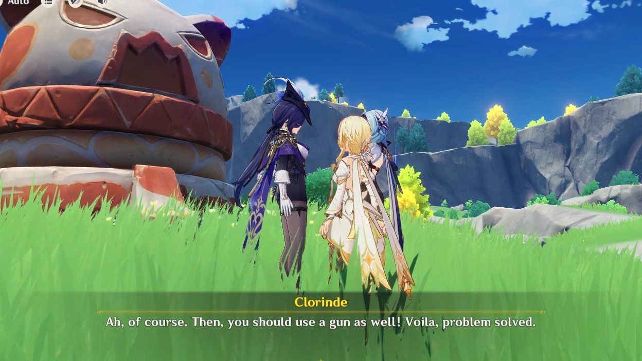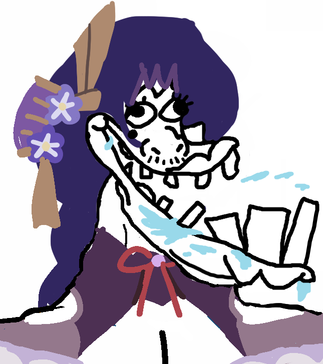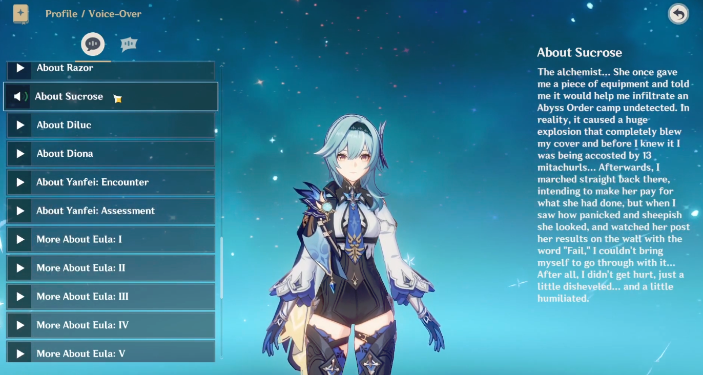 In one of her voice lines, she mentions how she got caught sneaking in an Abyss camp and was accosted by 13 mitachurls. She didn't get hurt but was left disheveled and humiliated. She actually said that. So it turned into a meme