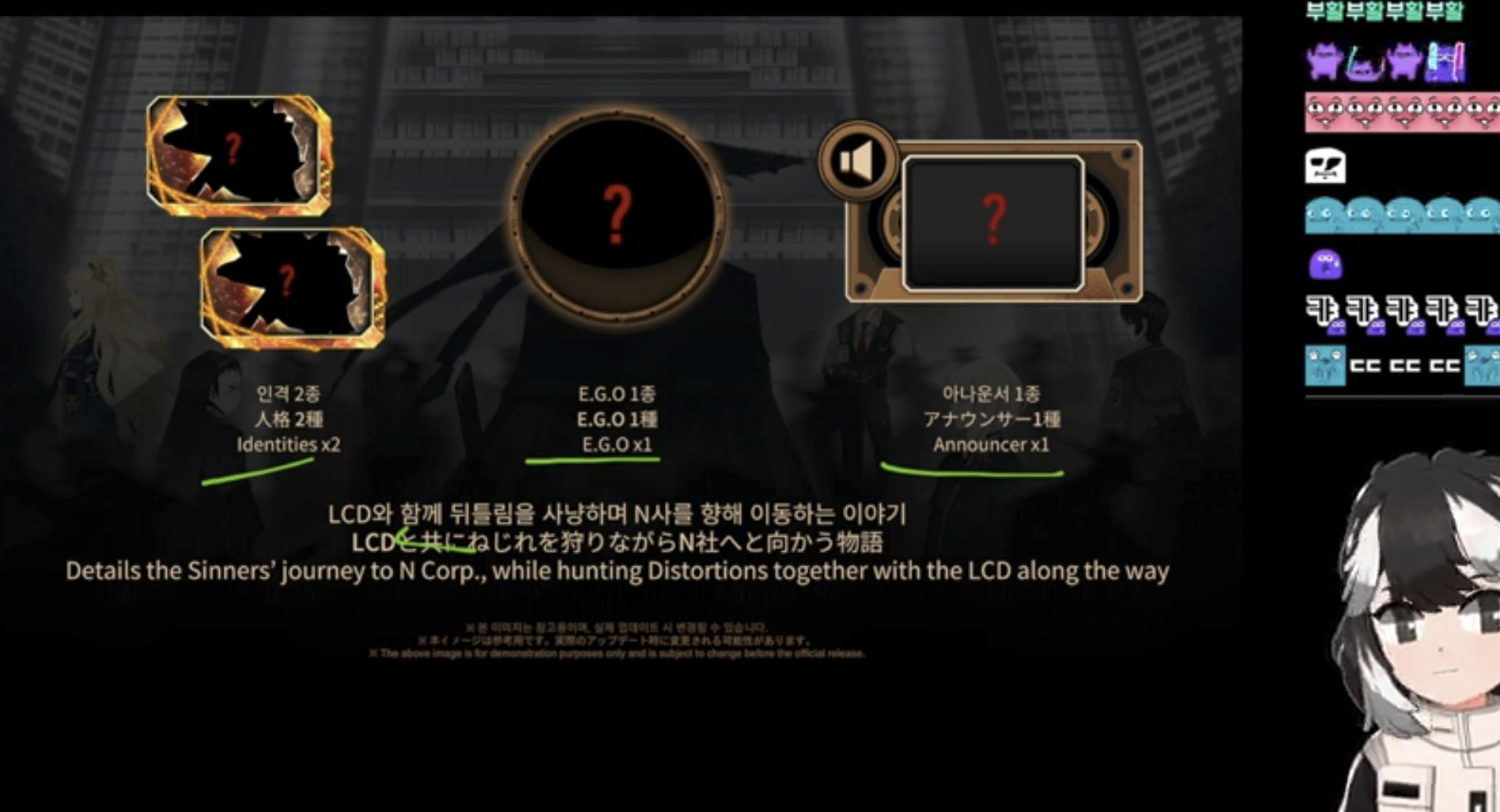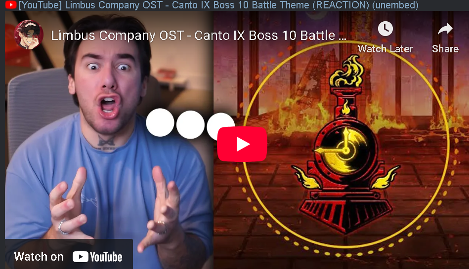 Previous thread #3847: >>558763483#3846: >>558764447Season 7 - Kumo no Ito2025.12.31 — Mirror Dungeon #7 - Mirror of Names and Spiders2026.02.19 —Refraction Railway Line 5 - Merry Go Round2025.02.20 —>Upcoming EventsThe 8th Walpurgis Night - The Dusk of Amber2026.03.05 — 2026.03.19>Current EventsLimbus Company 3rd Anniversary and Future Roadmap Livestream2026.02.27 19:00 (KST)3rd Anniversary Event2026. 2. 26 12:00 — 2026. 3. 26 10:00 (KST)>Upcoming Extractions2026.03.05 —[000] Lobotomy E.G.O::Hornet [Alteration] Meursault[000] Lobotomy E.G.O::Faint Aroma & Solitude Ryoshu[HE] Harmony Sinclair>Current Extractions2026.02.19 — 2026.03.05[000] The House of Spiders: The Index Nursefather Yi Sang2026.02.19 — 2026.03.05Target Extraction: [Hongyuan] & [Hong Lu]>FAQs! This game is directly tied to the setting of Project Moon's previous games, Lobotomy Corporation and Library of Ruina, and is set after both. Expect spoilers for those games in this thread.! The tutorial is important.>Download linksAppStore: https://apps.apple.com/app/limbus-company/id6444112366Google Play: https://play.google.com/store/apps/details?id=com.ProjectMoon.LimbusCompanySteam: https://store.steampowered.com/app/1973530/Limbus_Company/>Other linksOfficial twitter: https://twitter.com/limbuscompany_bOfficial youtube: https://www.youtube.com/@ProjectMoonOfficialOfficial site: https://limbuscompany.global>Required readinghttps://mega.nz/folder/xosDkZ5Z#Wt4JpUt5Bb2XG77pxuuXpw>For all your EGO and Sinner info needshttps://limbus.kusoge.xyz/https://gll-fun.com/en/>Useful resources and a general guidehttps://rentry.org/lcg_resourceshttps://rentry.org/lcbguidehttps://rentry.org/LCB_optimal_grind_guidehttps://lcb-days-since-last-id.carrd.co/https://lcb-days-since-last-ego.carrd.co/>Countdownhttps://lcbcountdown.carrd.co/3rd Anniversary Animationhttps://youtu.be/NtvbDGnRT-g?