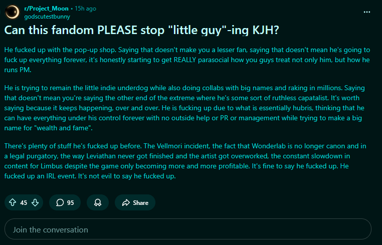 I like kjh melties and his ideal and I also think he can be a retard at management at times. I thought that was the opinion most people had here instead of leaning towards one side or the other.