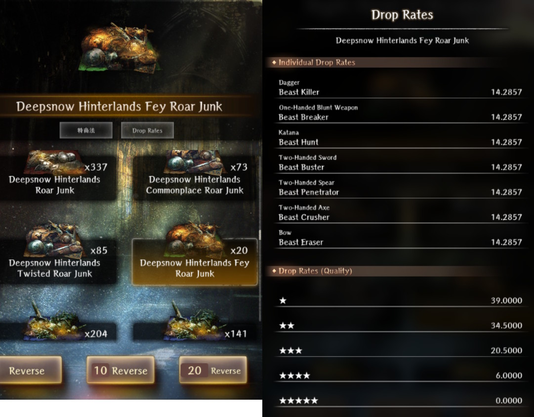 >>558906595Fey roar. You find it in the late areas of a4 or the earlier mimics. Don't expect anything better than a 4* blue with how rare the junk/drops are.