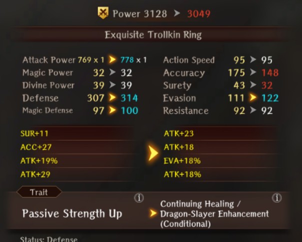 >Troll ring with slightly more attack than my fighter ringNot bad.