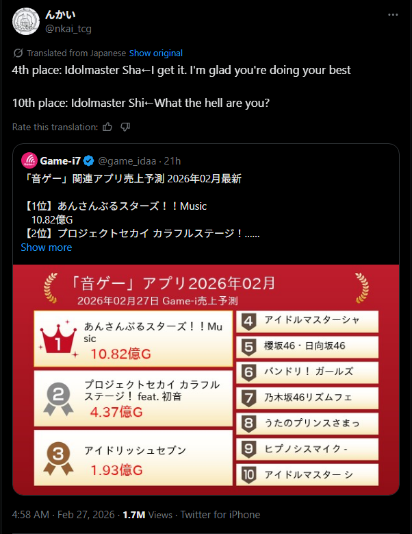 People are using the hashtag from this tweet to post or celebrate 13 years of Million Livehttps://x.com/imasml_theater/status/2027217122427011457