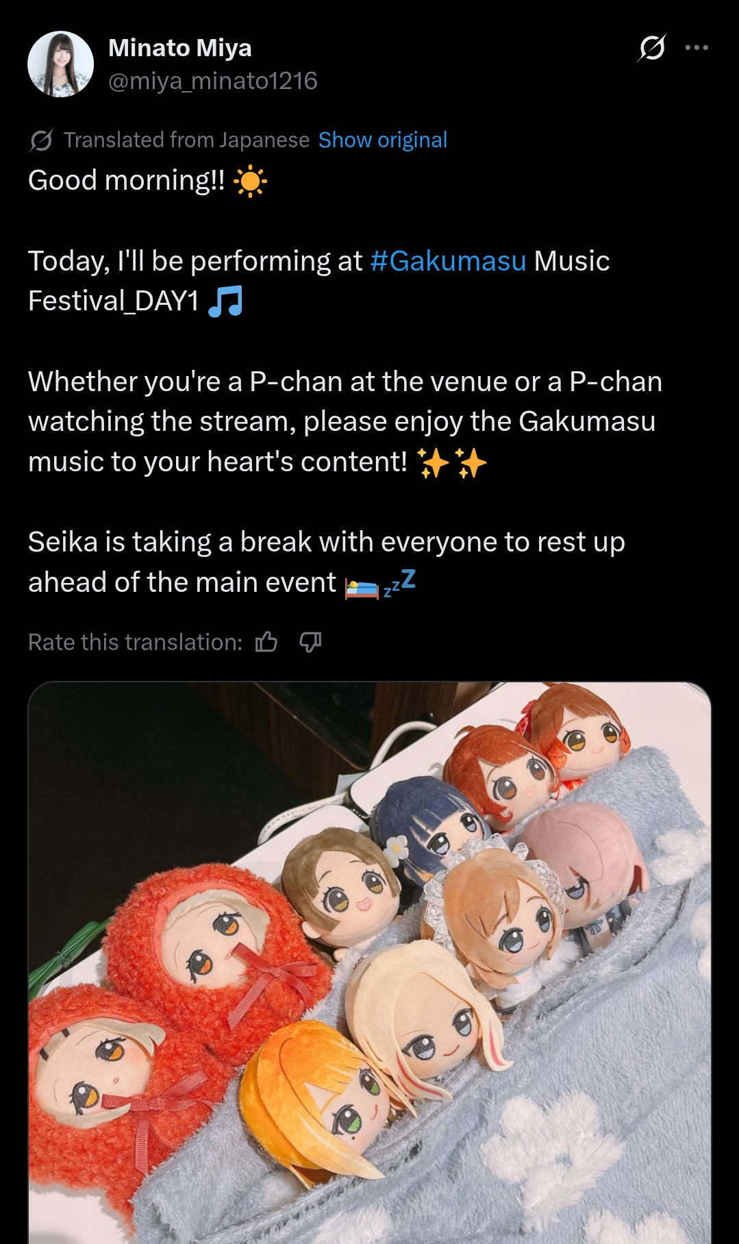 iDOLM@STER ThreadPrevious iM@S Thread: >>558730224Official website: idolmaster-official.jpJapanese news: imasnews765.comEnglish wiki: project-imas.wikiAPKs: apk.ksmz.moeOld archive of materials: sites.google.com/view/yukipobackupOld FAQ + Resource Links: pastebin.com/icRtaLvvMaterial translations + Music downloads: pastebin.com/DebHdukECharacter birthdays: pastebin.com/cLdezeDuNext thread OP: pastebin.com/A5UGxTuBHelpful Links: pastebin.com/Z70CGAsN>Event/Gacha Dates (Feb 27th): >>558767432 >>558767510- Previous News: >>558730248 >>558730282TODAY:Feb 28th, 5PM JST: Hatsuboshi Music Festival @Keio Arena TOKYO DAY 1 Feb 28th, 8PM JST: Hatsuboshi Music Festival @Keio Arena TOKYO DAY 1 AP stream: youtu.be/kyAAZFQ-kukFeb 28th to Mar 1st: Hatsuboshi Music Festival x animate cafe: >>557593115Feb 28th to Mar 22nd: Hatsuboshi Cultural Festival Fair at Animate: >>548911454TOMORROW:Mar 1st, 4PM JST: Hatsuboshi Gakuen Broadcast Club at Hatsuboshi Music Festival: youtu.be/GJKgEWn0u04 >>558547439Mar 1st, 5PM JST: Hatsuboshi Music Festival @Keio Arena TOKYO DAY 2Mar 1st, 8PM JST: Hatsuboshi Music Festival @Keio Arena TOKYO DAY 2 AP stream: youtu.be/T_WdWRwyAEYMar 1st: SideM x Yokohama Hakkeijima Sea Paradise Cast Stage "315 WINTER PASSION Stage" ~CLimax~