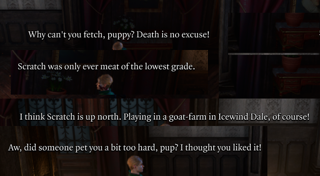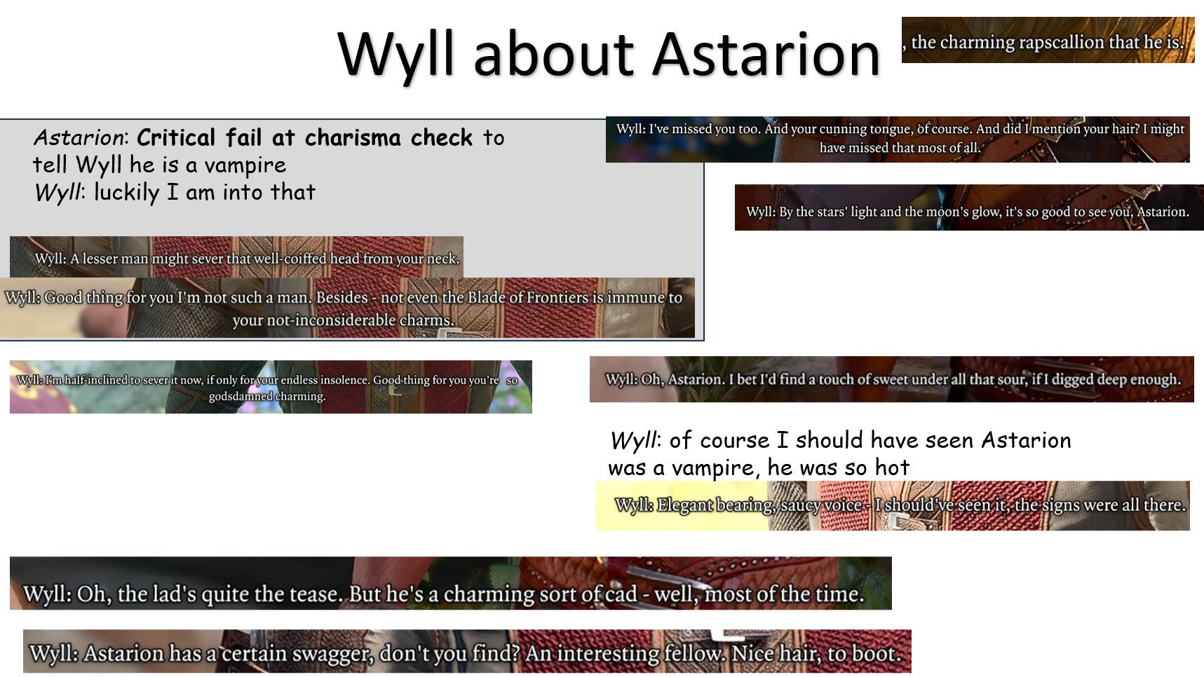 All of Wyll's barebones content should have been repurposed for more Astarion scenes.
