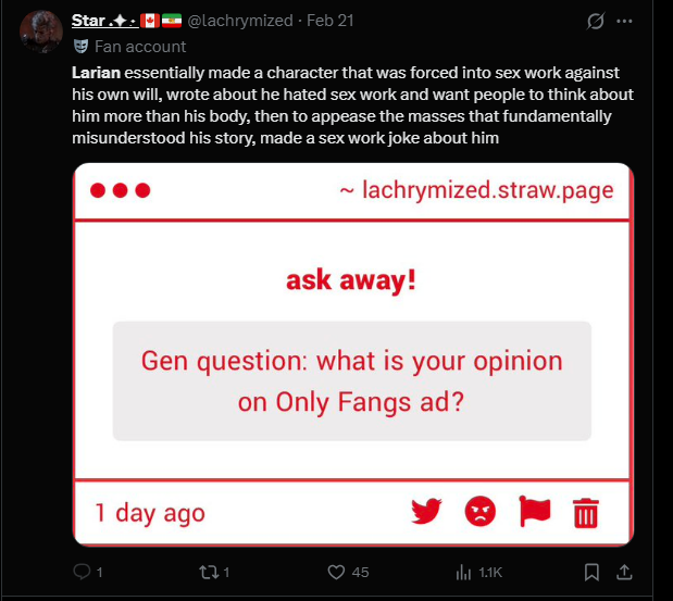 >>558895074bait/10saying you like karlach is the same as openly declaring that youre a homosexual
