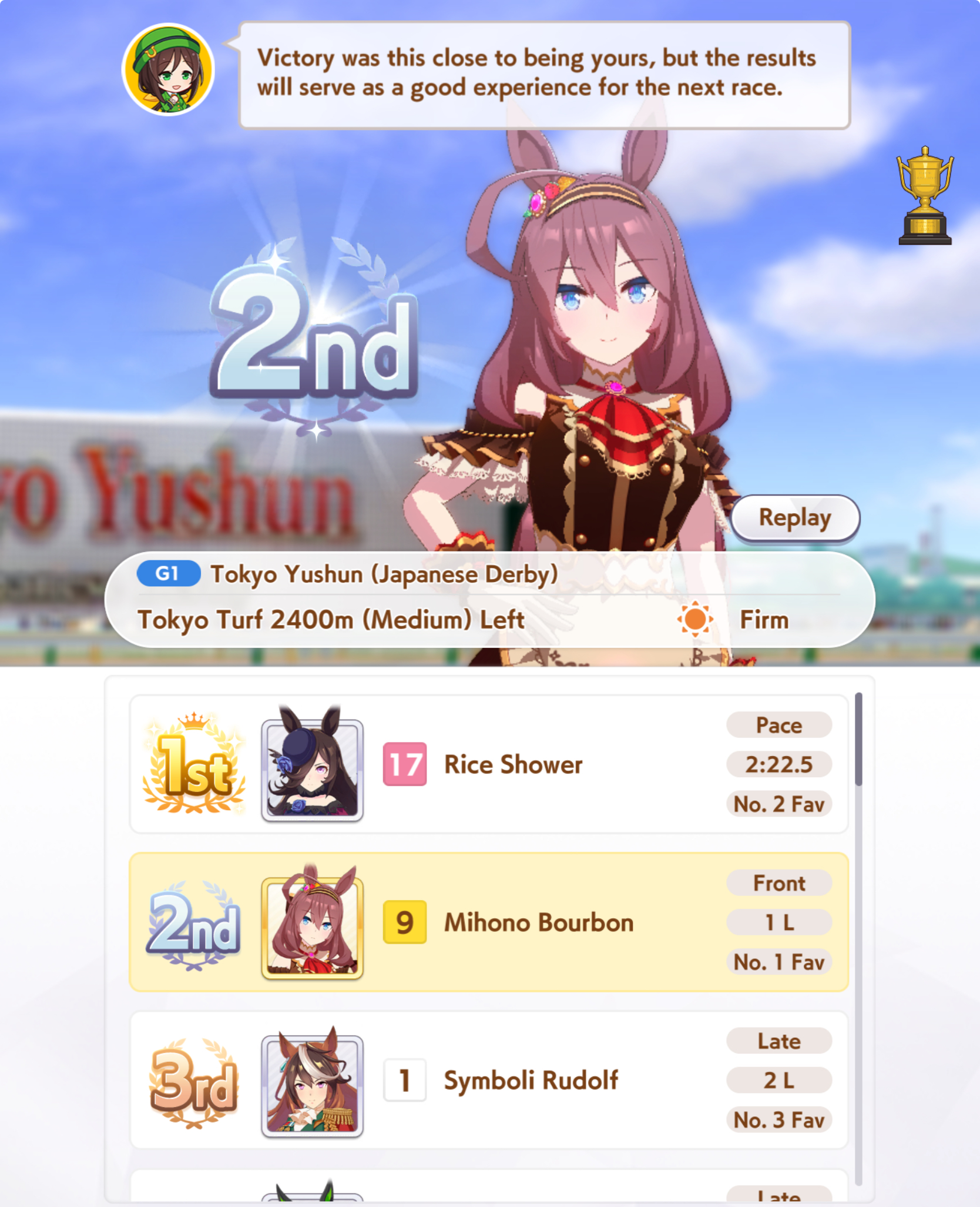 Finally got her in a race. Maru-chan cute.