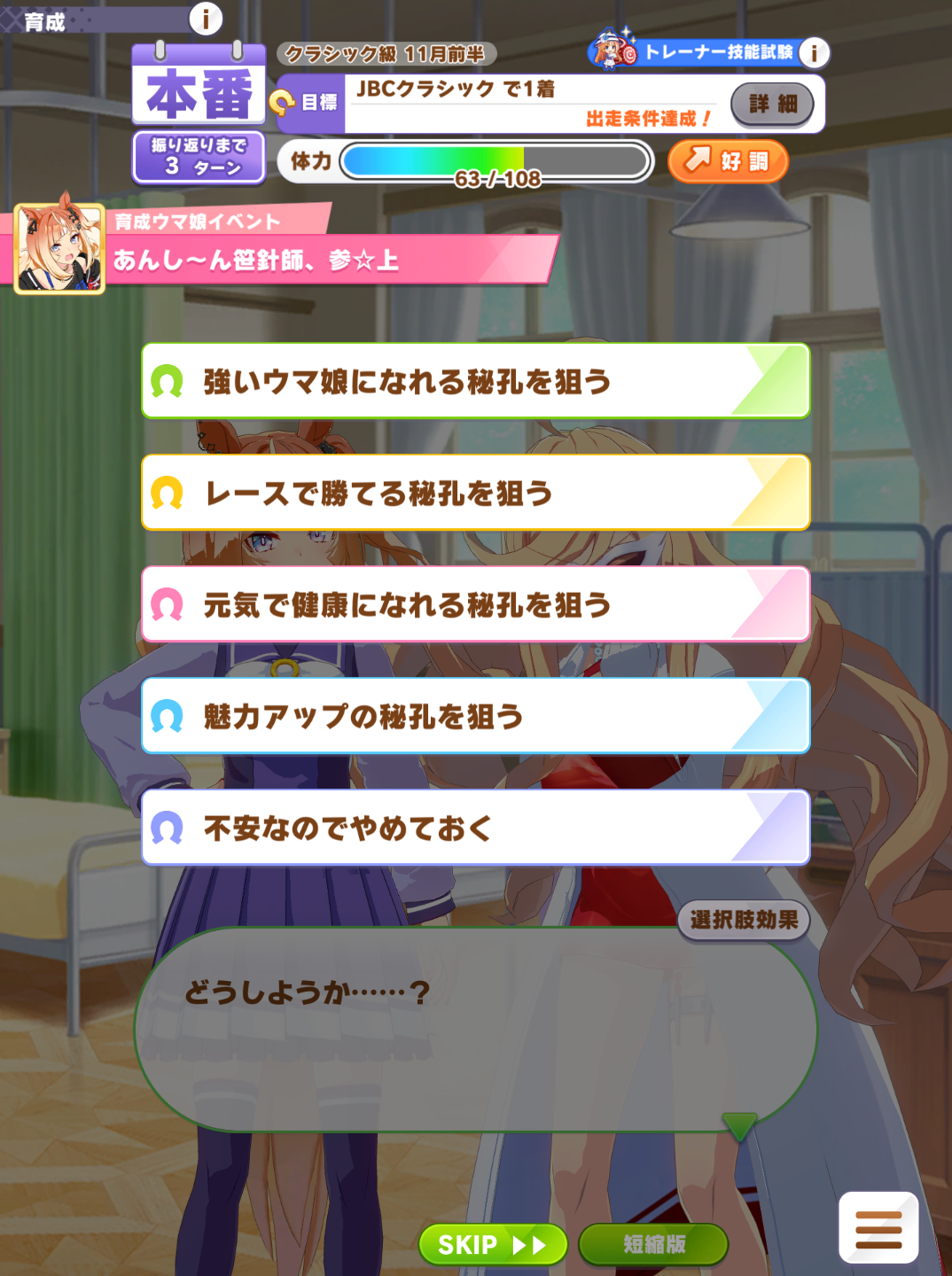 >>558827495In MANT there'll be rival races that reward skill hints. I know the pool includes skills for the distance the race was in. Hopefully it also adds the pool of skills for your running style.