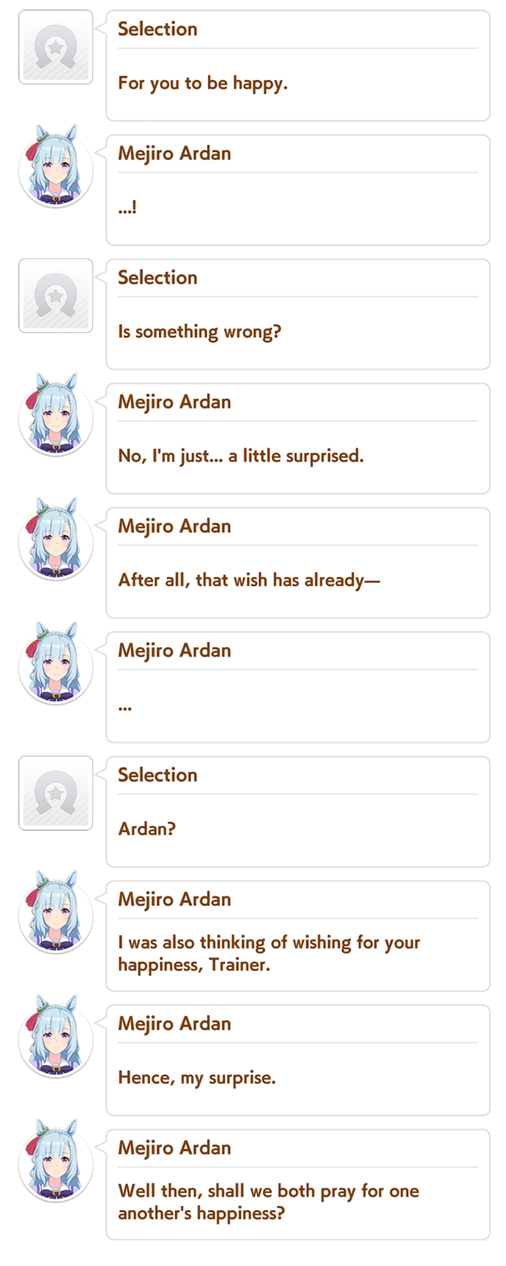 Previous: >>558781121>Global Game NewsLink your account to Cygames iDCurrent Scenario: Aoharu Hai aka "Unity Cup"Current Rate Up Trainee: Mejiro Ardan (3*), Mihono Bourbon (3* alt), Eishin Flash (3* alt)Current Rate Up Support Cards: SSR Agnes Digital (Power), SSR Nishino Flower (Wit), SSR Sakura Bakushin O (Guts), SR Ines Fujin (Wit)Current CM: Aquarius Cup - Tokyo Dirt 1600mMain Story Chapter 5 is out02/18 - 03/01 - Valentine Bourbon & Valentine Flash 3*+Nishino SSR+Bakushin SSR02/18 - 03/01 - The Peak of Confection02/25 - 03/05 - Mejiro Ardan 3*+Agnes Digital SSR02/26 - 03/07 - Legend RacesEarly March - Aquarius Cup - Tokyo Dirt 1600m Left-handed / Winter / Sunny / Firmhttps://umamusume.com/news/100040/https://pages.snep.pw/uma/anni-skill-changes/>JP Game NewsCurrent Rate Up: Almond Eye (3*), SSR Forever Young, SSR Casino DriveNew Scenario "Beyond Dreams" releasedTimeline: https://uma.moe/timelineCygames Webstore: https://webstore.cygames.com/en/umamusume_en/>Thread Clubshttps://rentry.co/umaglobalclublistYou must be E3 (20k points) to join a circle. Apply with /uma/ or /vg/ in your profile or post ID in the thread.>All Guides & Resourceshttps://rentry.org/uma26Game databasehttps://gametora.com/umamusume (Click the gear to switch between JP / global server info)A basic guide for newfagshttps://rentry.org/umaglobalFind networks if your region is blocked from the game or clienthttps://www.umavpn.top/93Seiyuu & Concertshttps://rentry.org/umstUmamusume Birthday Calendarhttps://ウマ娘.攻略.tools/events/birthdayUma Texthttps://umareader.idsmile.xyz/