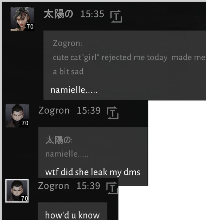 keeping wwmg alive by being too scared to post anything because everyone will make fun of them? lol didnt HS agree that they only talk in guild chat because the scary NFA posters will shit on them here