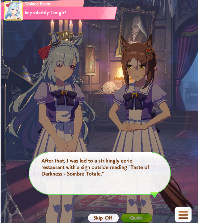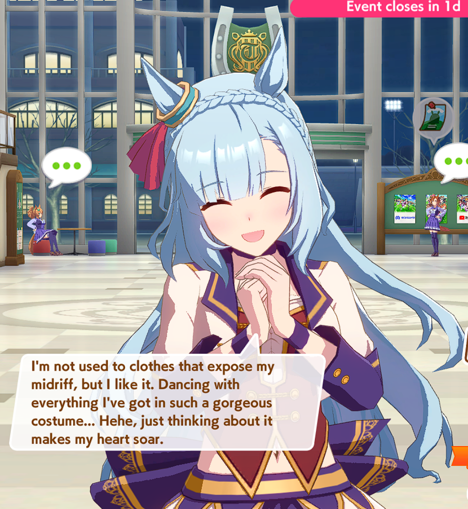 >>558839729Yes, in particular that’s her epilogue scenario link scene after she wins the BC. Scenario link stories basically continue from the end of the uma’s career story. You won’t see these in the generic scenario events