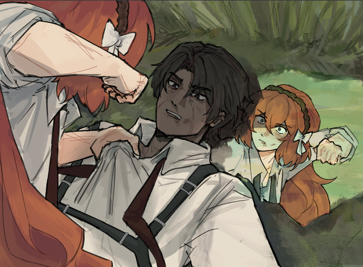 >>558842608Moses upzipping her jacket and Sinclair tumbling out soaked in her sweat