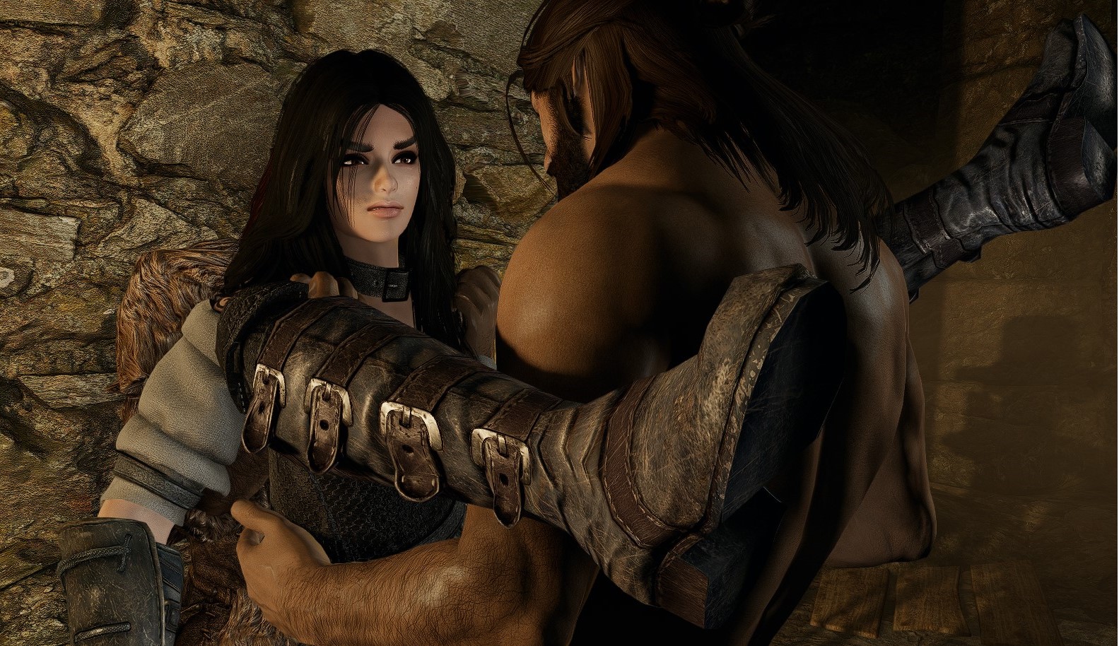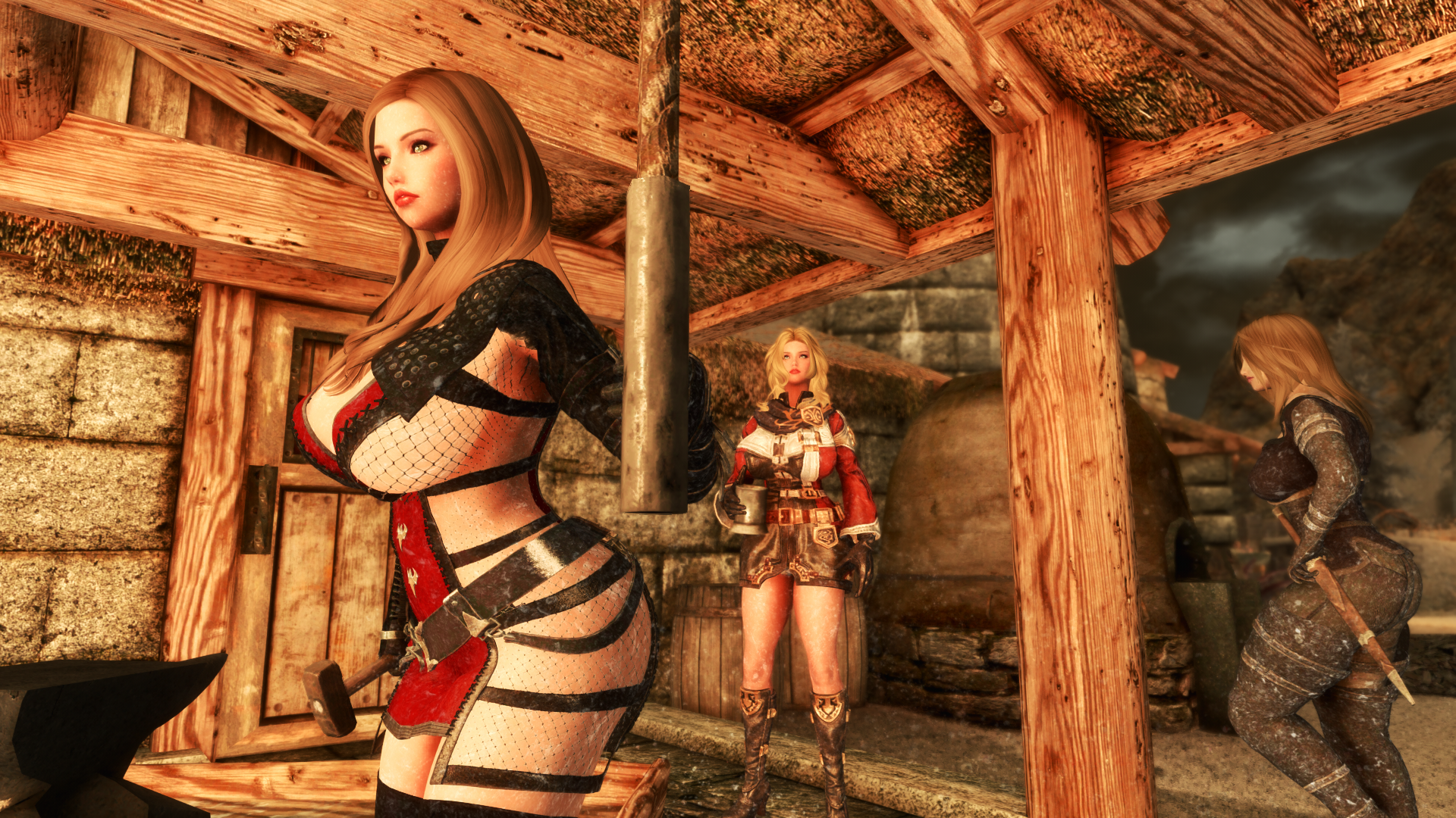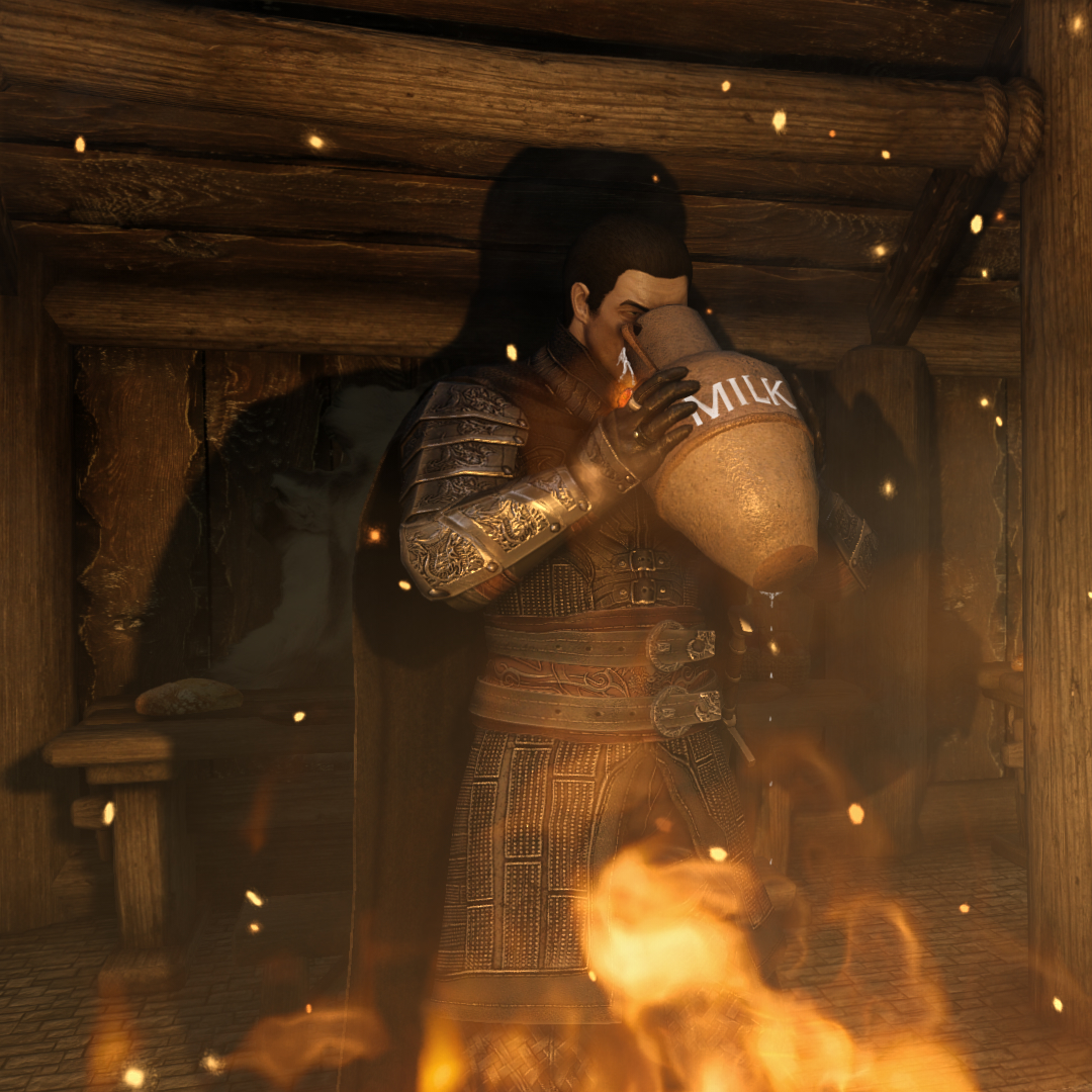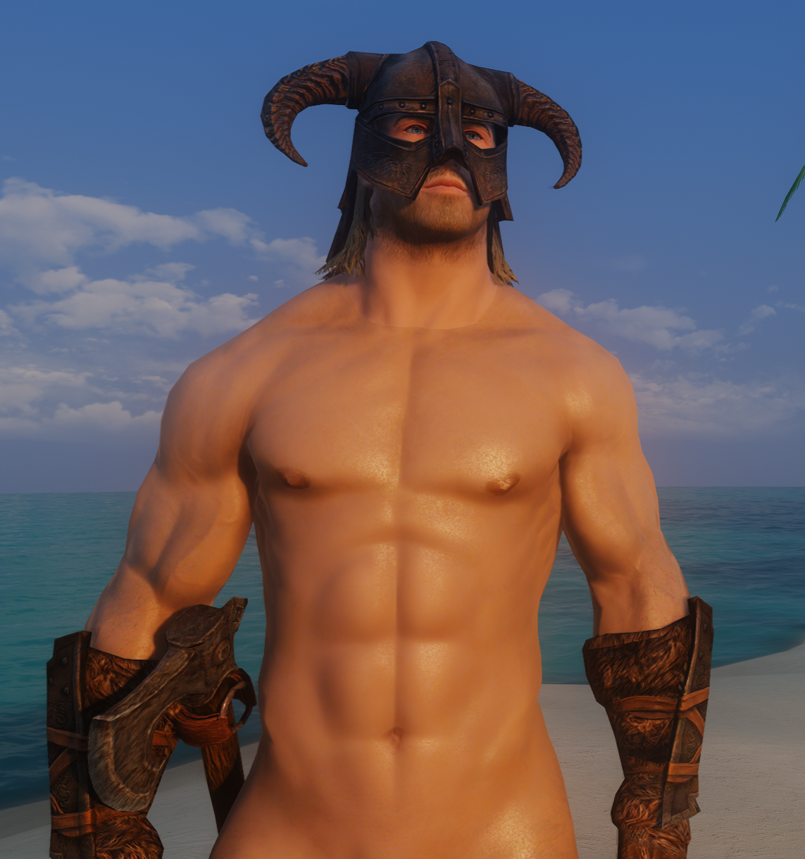 My Nord waifu doing an idle where she does that stretch with interlocking fingers palms up arms above her head and her big muscular arms and sweat covered(this is a dynamic activity based function in TESVI) armpits are on full display.