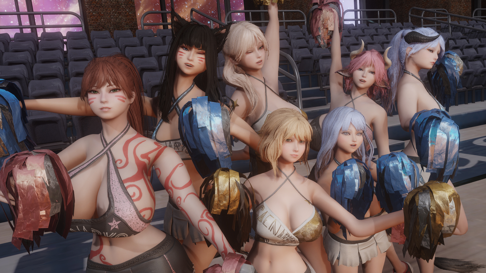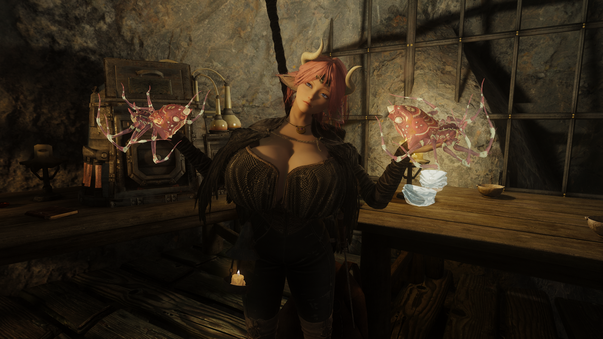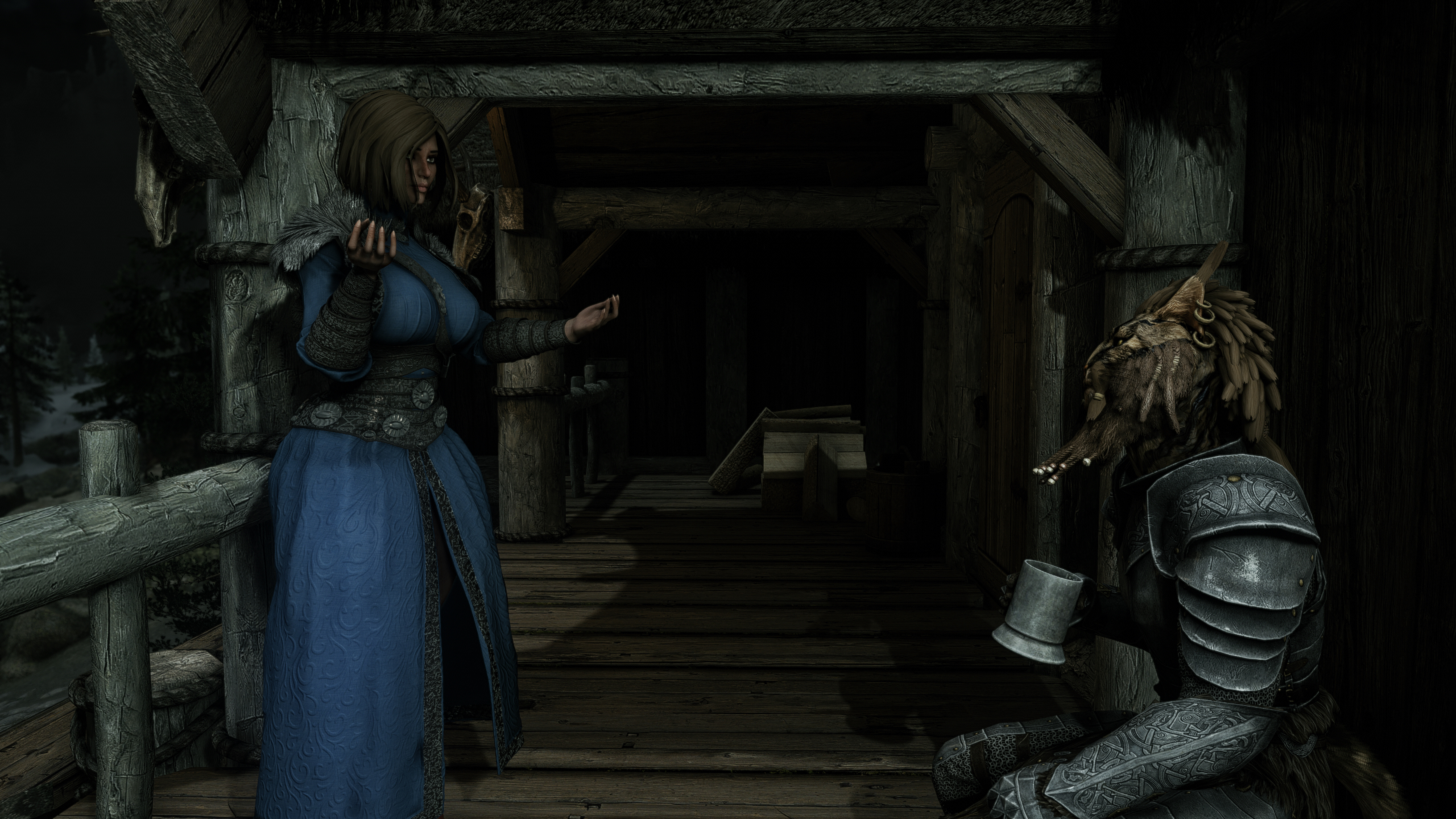 My Nord waifu doing an idle where she does that stretch with interlocking fingers palms up arms above her head and her big muscular arms and sweat covered(this is a dynamic activity based function in TESVI) armpits are on full display.