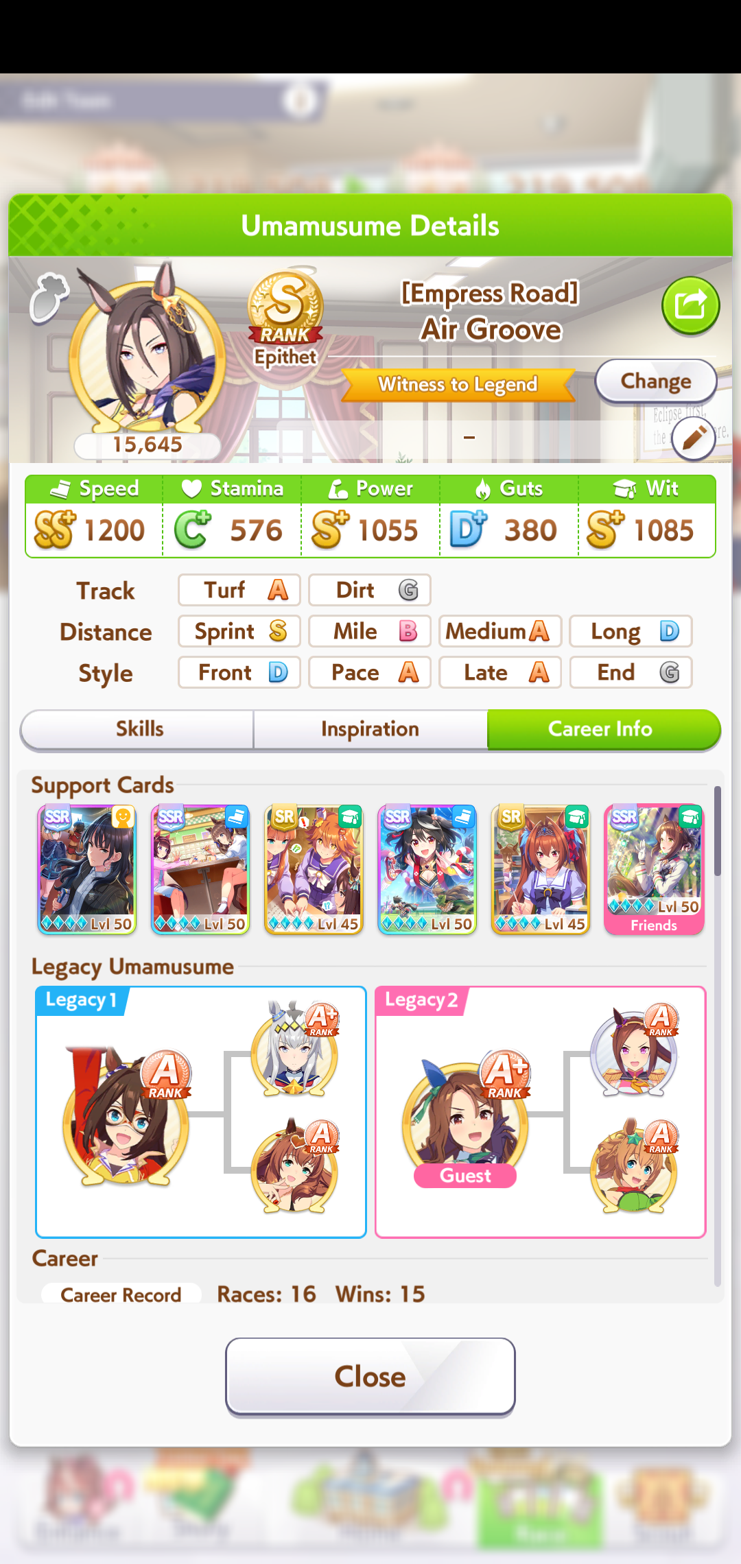 Current Rate Up Support Cards: SSR Agnes Digital (Power), SSR Nishino Flower (Wit), SSR Sakura Bakushin O (Guts), SR Ines Fujin (Wit)