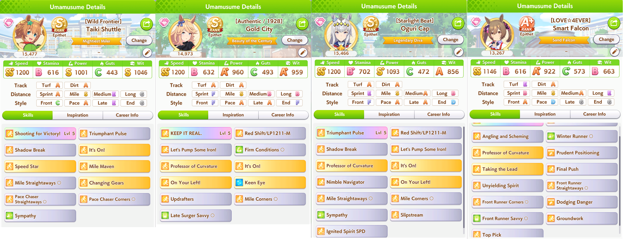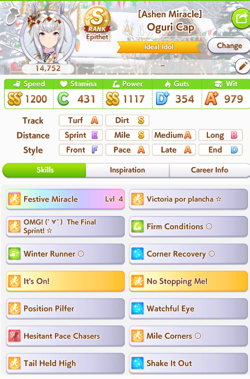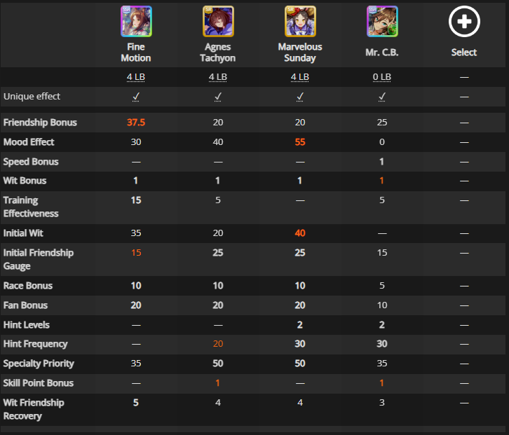 >mogged by SR Tachyon (skill point bonus)>mogged by SR Marvelous (full of core skills)>barely better than CB at 0 copiesanyone rolling for FM should not be considered a human capable of thought, even less if they are wasting sunlights on it >b-but muh training efficiency tho!!have fun getting 1 more stat gain in guts because she's never showing up in wit lmao>b-but what about speed starnot only it's an agemasen event but also comes with hint level 1