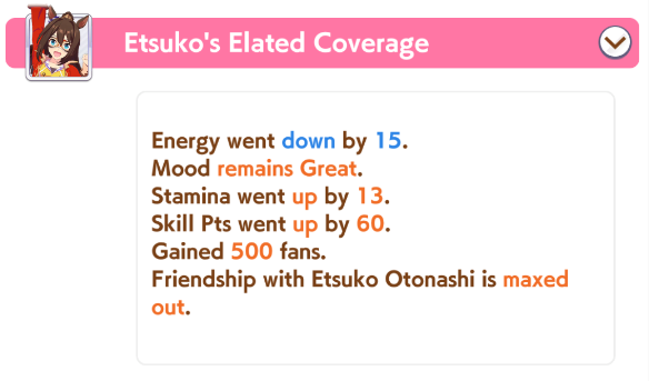 >>558894467whatever the threshold is that bumps your post-race rewards up another stat tier. i think that's why 70 is considered a sweet spot.