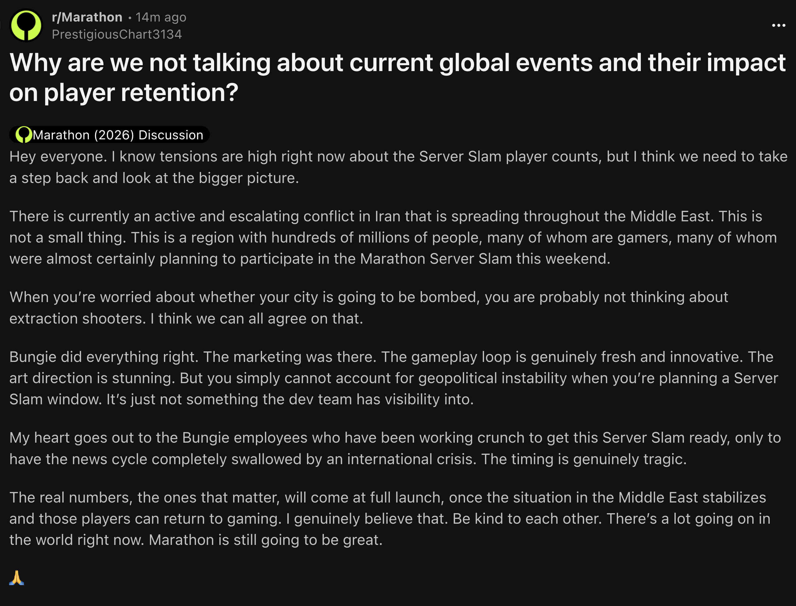 Has the playerbase been impacted at all by marathon?