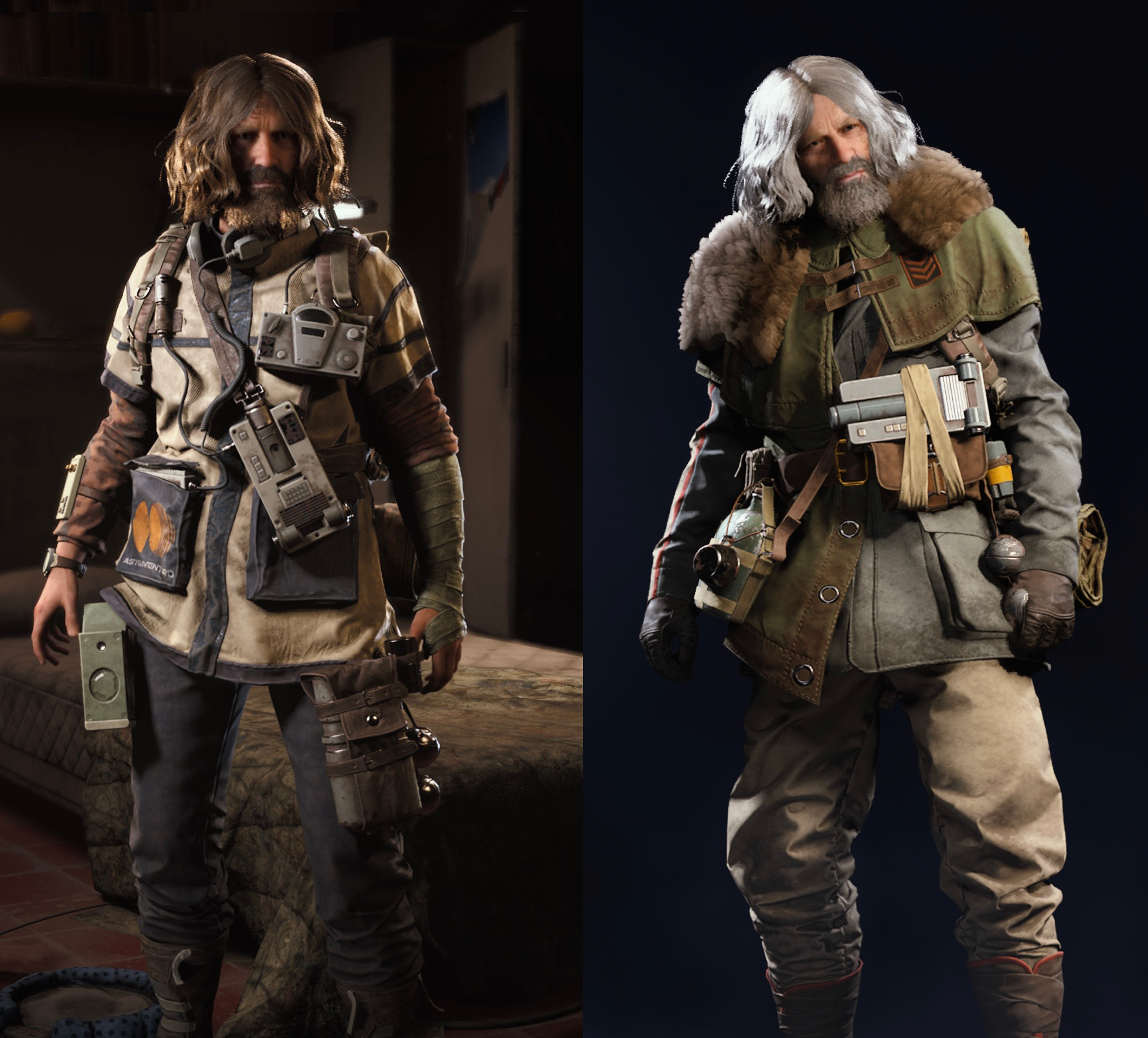 I rotate between these. Left for warm maps, right for winter. Also Marco trench coat for when it's raining/hurricane.